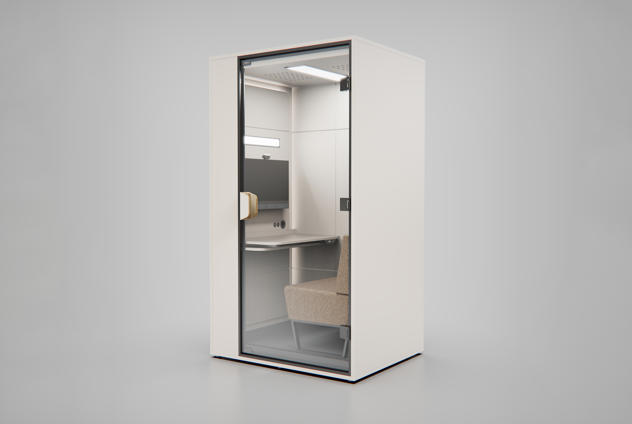 Poddie Video is a compact acoustic booth designed for single-person use in modern offices, optimized for focused work and high-quality video communication. It is the first product in the newest Poddie line, developed on
