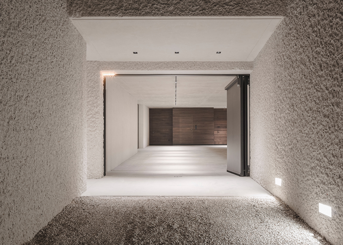 Built to the A Nature Climate House standard, the project ensures energy efficiency and sustainability through local materials. Concrete walls, mixed with an aggregate of white Dolomite rock, were finely treated on site for a unique texture, while façades and roof feature South Tyrolean larch wood. Interiors use local oak for walls and floors, creating a warm, inviting atmosphere. Functionally, the house offers a basement with ample parking and two upper floors that host the main living areas.