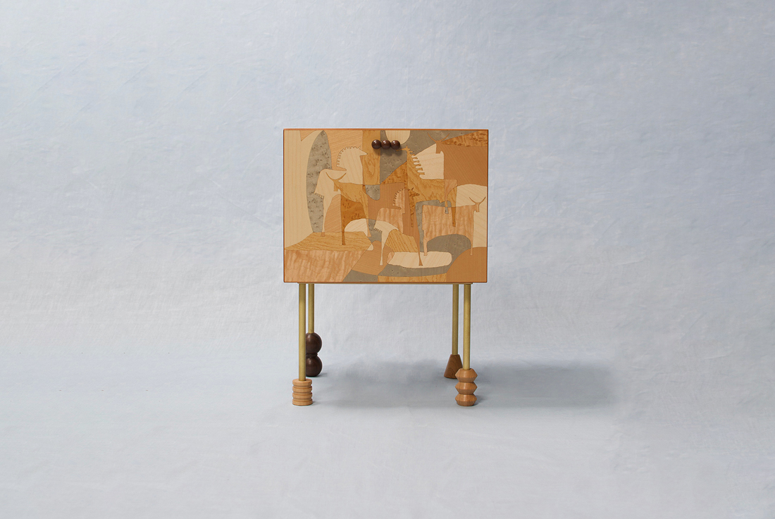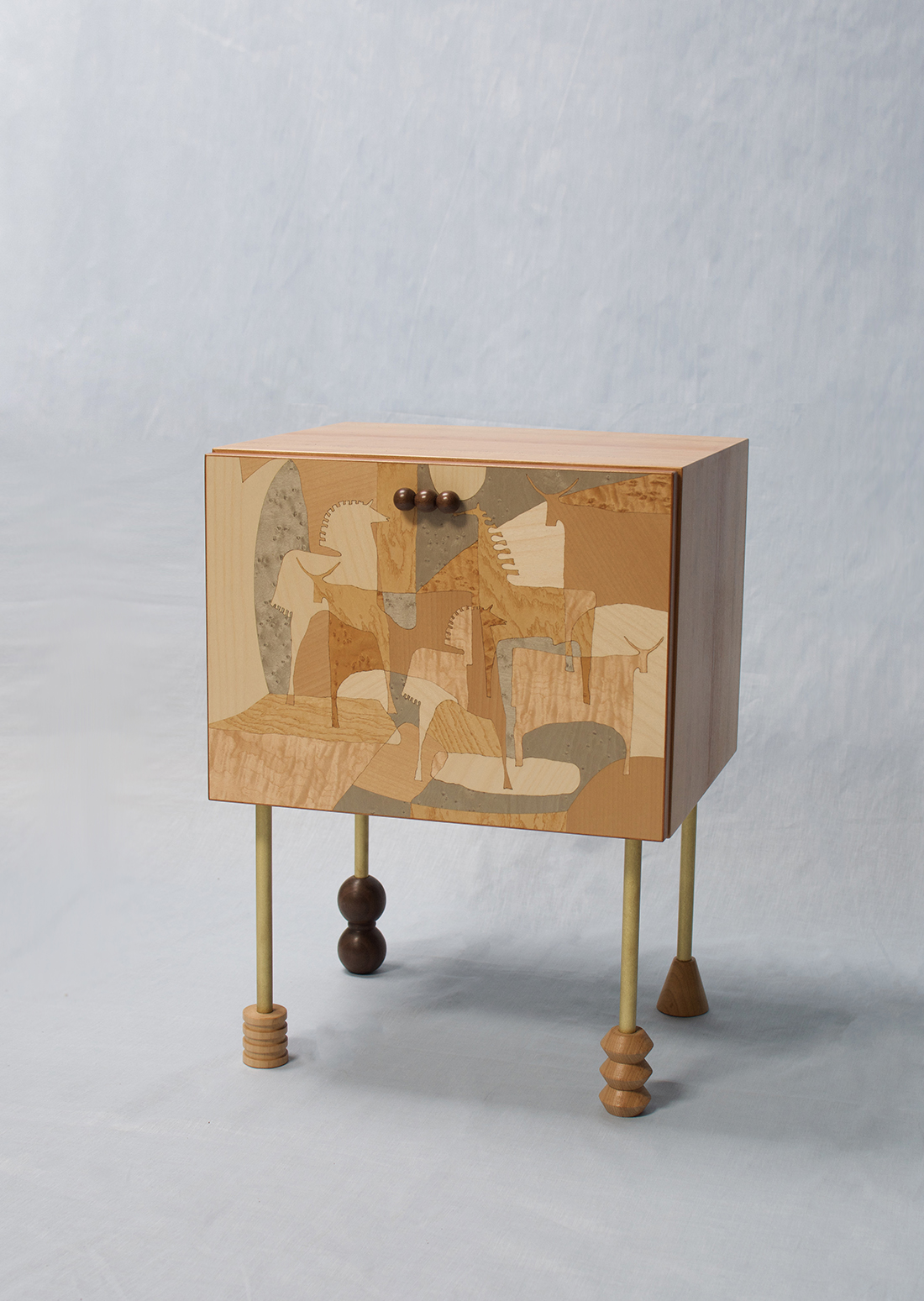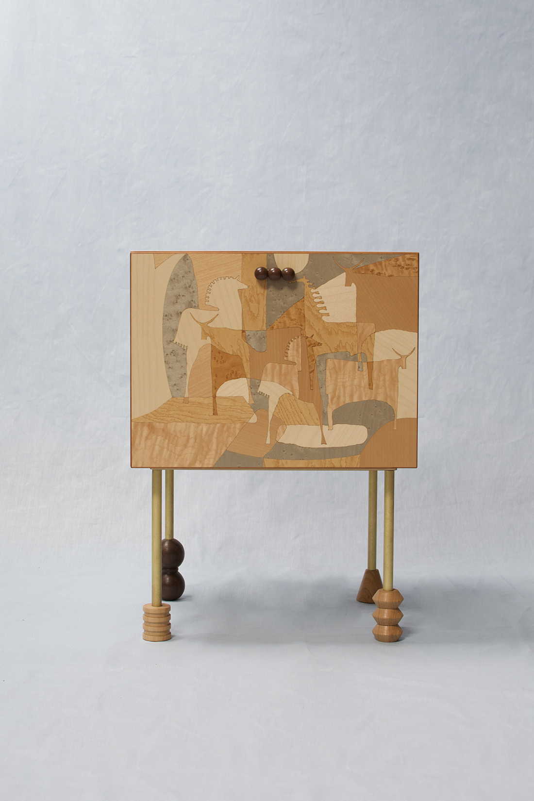 The creators of this limited edition design are Eszter Kunos (designer, marquetry), Anna Lébényi (co-designer), Ádám János Nagy (joiner), and Jenő Köpf (wood turning).