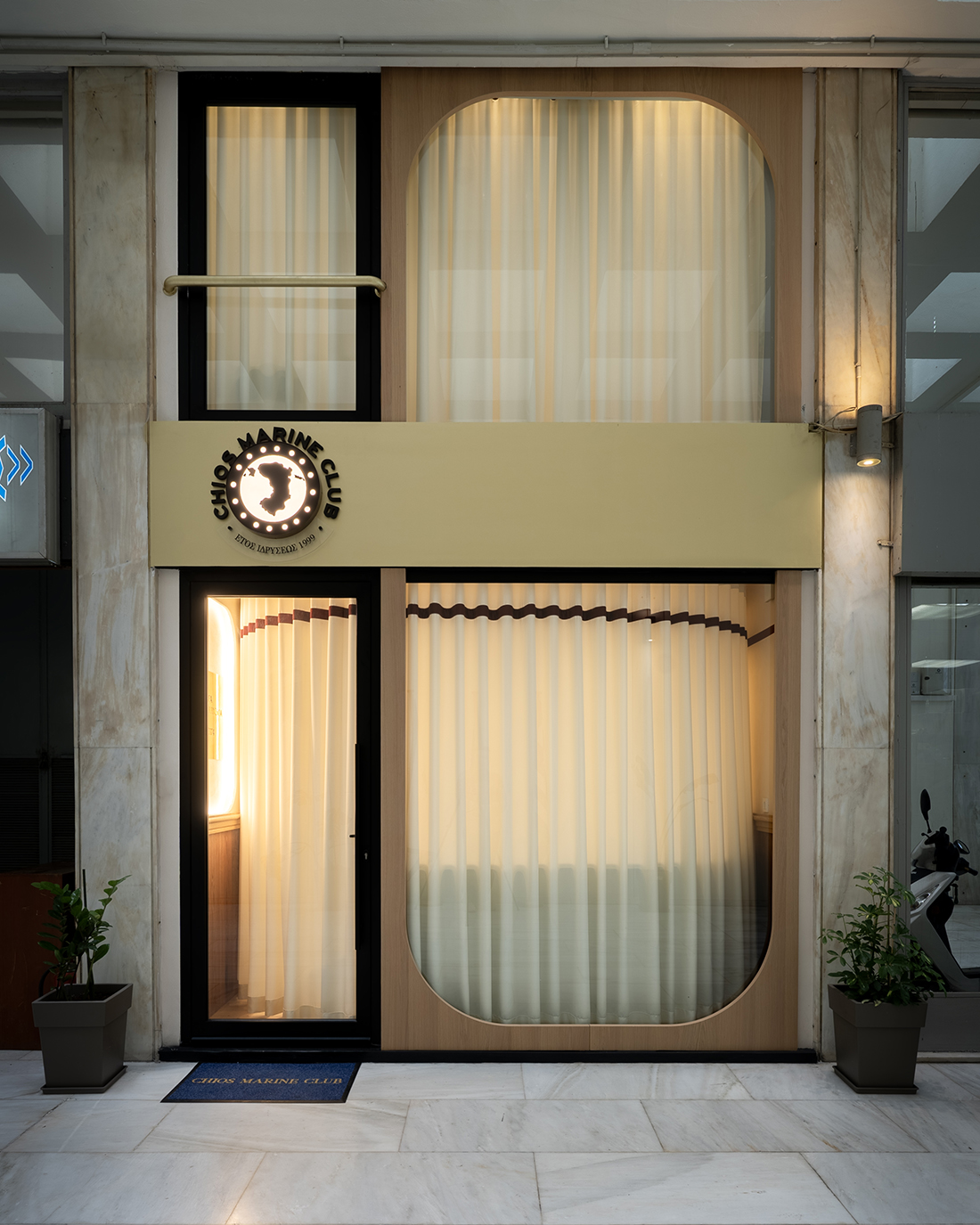 In the heart of Piraeus, behind the glass façade of a 1974 arcade, a former coffee shop becomes a spatial manifesto, a maritime club engineered for the sharp minds of shipping. Rooted in Chios, aligned with legacy, the design channels tradition through the precision of modern minimalism.