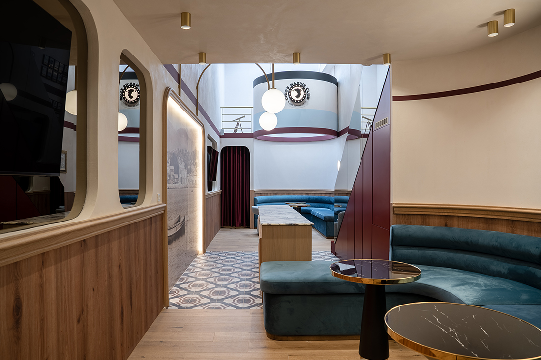 Nautical codes are distilled into architectural form: a custom marble bar, bronze reflections, soft curves, and strategic layering. Nothing is arbitrary. Every surface performs socially, symbolically, functionally. Composed, intelligent, and unapologetically distinguished, the space operates like a vessel: built for clarity, connection, and command. This is architecture in its most strategic form, for those who lead from the helm.