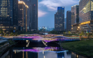 Cloud Valley Hub is a mixed-use scheme comprising meeting rooms, exhibition space, retail, offices and amenities. The building is located in the heart of Cloud Valley, a new e-commerce district on the outskirts of Ningbo. The building’s initial role was to market and promote the Cloud Valley district, signifying the start of development while expressing the spirit of a new emerging economy. Due to the challenging site conditions, Studio Woodroffe Papa raised the meeting rooms and exhibitions spaces off the ground, connected by a ring of circulation around a central courtyard. On the ground floor, retail, restaurants and amenities are arranged as a series of pavilions that populate an urban landscape with gardens and plazas where people can meet and interact.