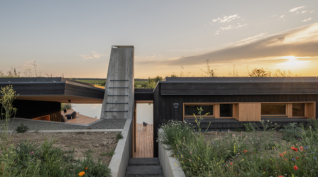 Hiding in plain sight, this CLT house seamlessly harmonizes with nature and architecture, embodying sustainability at its core. Nestled in Hungary’s lush rural landscape, it blends effortlessly into its surroundings.