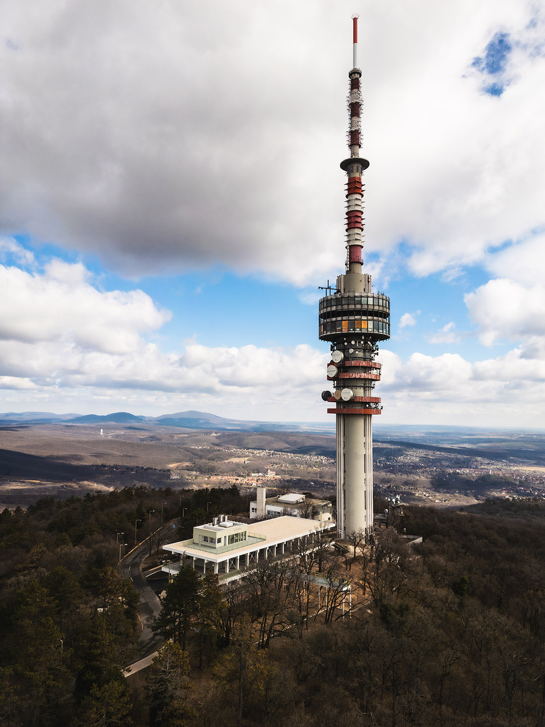 New character elements were created on the upper floors of the building, departing from the existing contours. The first floor now features an event space and a covered terrace. The roof level of the building was expanded to include a sky bar and a terrace with a breathtaking view of the city. Moreover, in addition to the renovation and extension of the existing building, a comprehensive environmental renovation of Misina Peak was carried out, along with the renewal of the outdoor open spaces. The enhancements include an adult and children’s playground, a consumer area, and a recreation and cycling area, giving the site a comprehensive, coherent atmosphere.