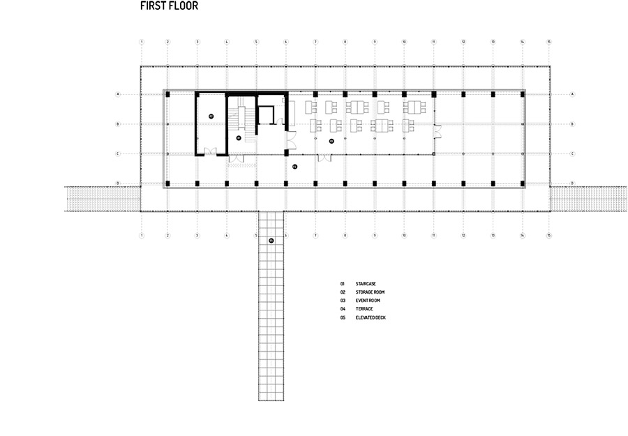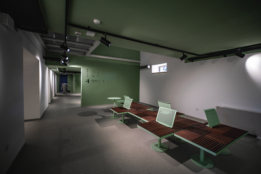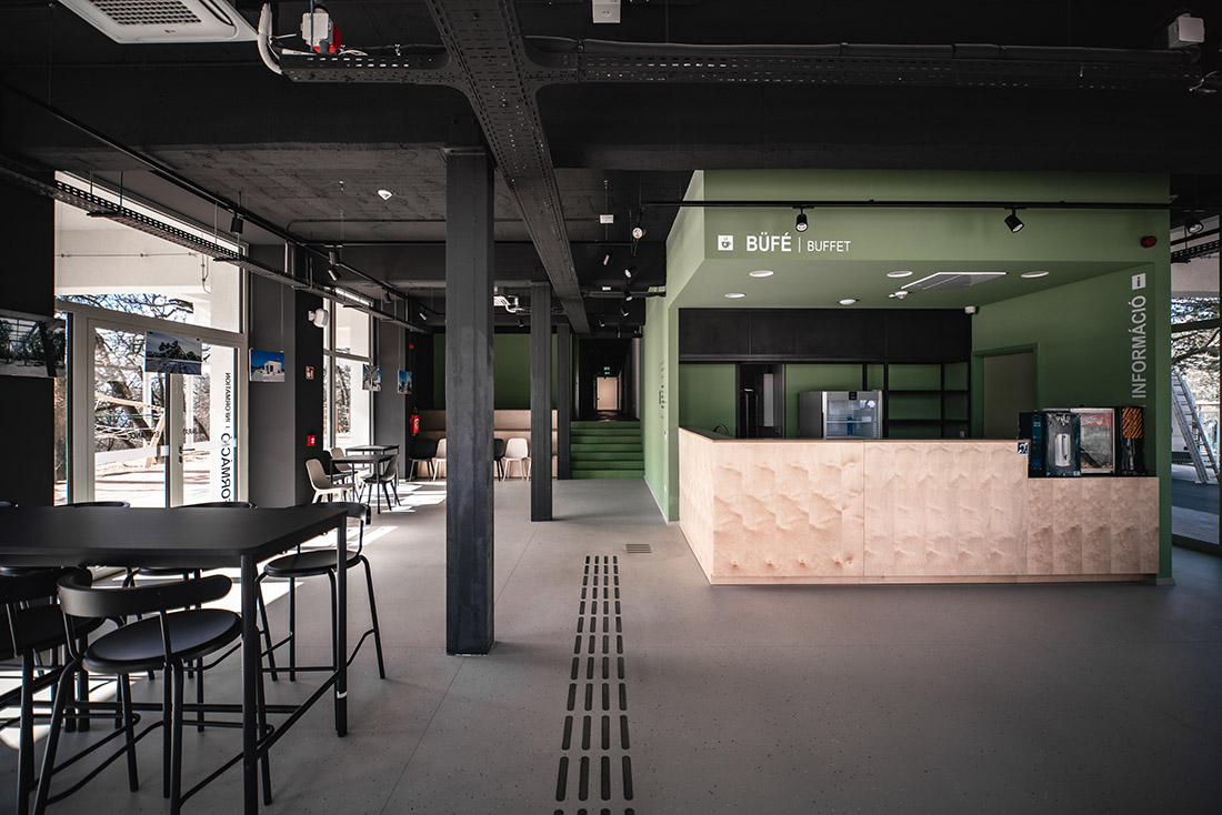 The building design process, initiated in 2021, aimed to effectively accommodate the functional units proposed in the public participatory design, while optimizing the utilization of the building’s contours, which had been underused for a decade. The basement level of the building was dedicated to service functions such as changing rooms, showers, luggage storage, and mechanical space. On the ground floor, two primary arrival directions are marked by a western shop with a tour desk and an eastern café with an information point. These functions have been opened up to the surrounding area, thus strengthening the connection between the interior and exterior spaces.