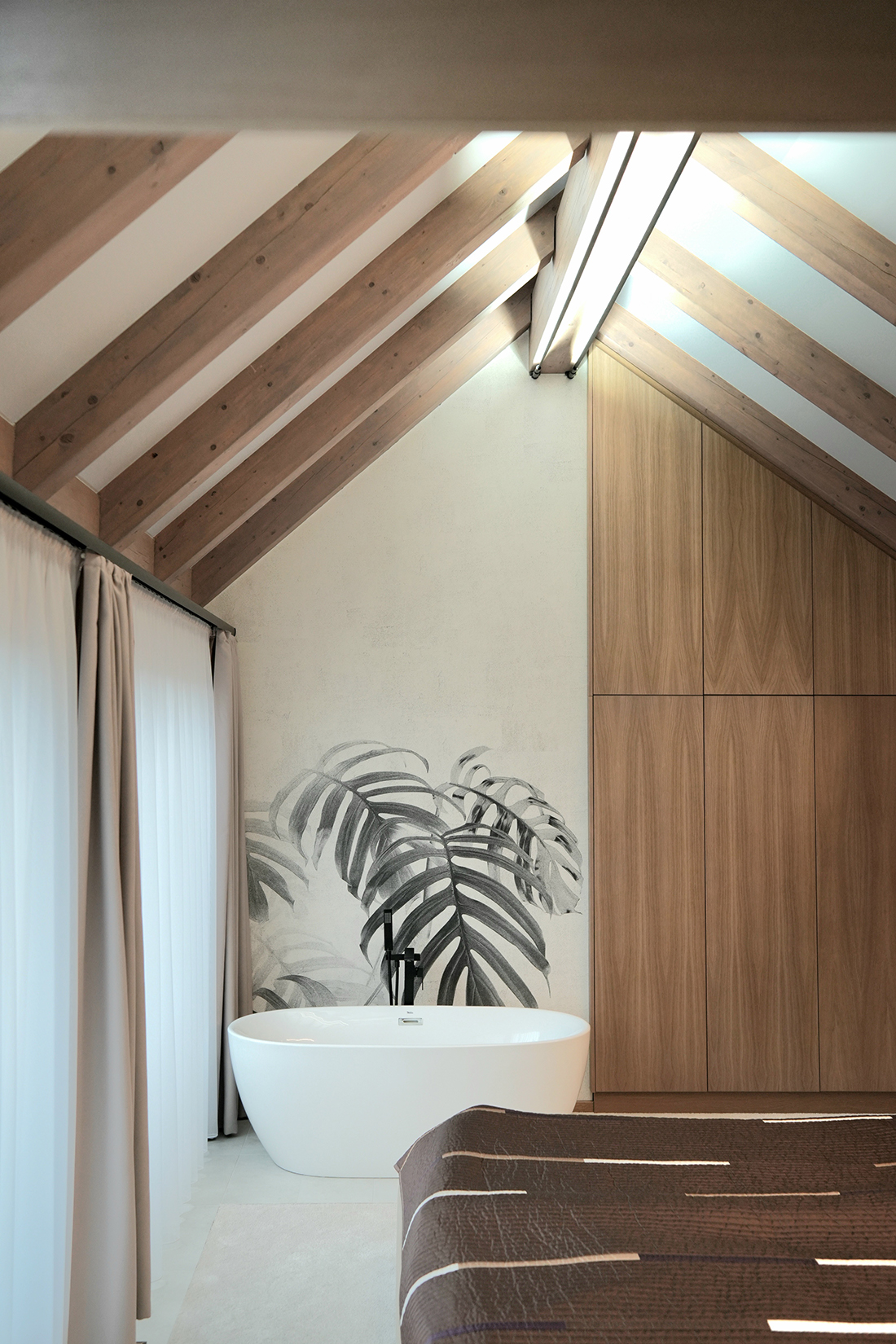 This new building was constructed on the only vacant plot along a historic winery street lined with listed buildings. The ground floor is designed almost entirely as a spacious family area, while the bedrooms are located on the upper floor. An impressive master bedroom with a large rooftop terrace occupies the attic.
