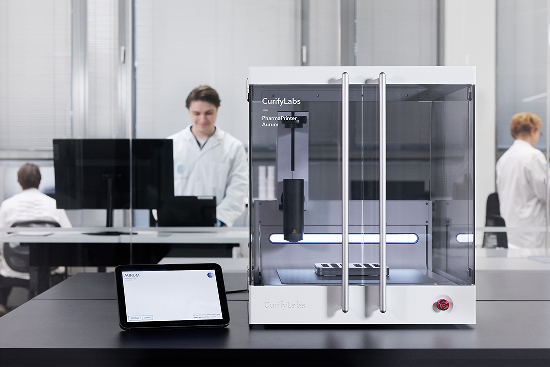 CurifyLabs’ PharmaPrinter Aurum is a pioneering device to compound personalized medicines in pharmacies. Aurum enables precise, safe, and Pharmacopeia-compliant production of personalized medicine. Its patented syringe attachment and modular hot-end ensure efficient operation, while built-in balance delivers automated mass uniformity for each dispensed.