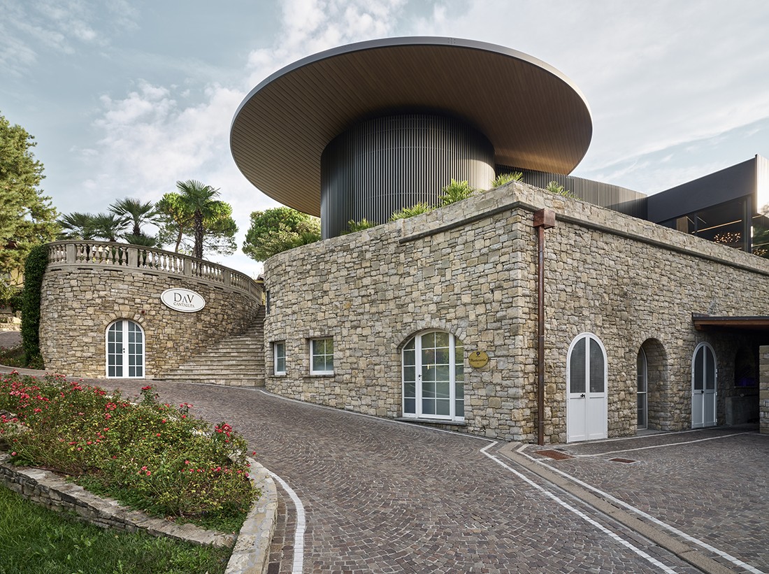 The DaV Cantalupa project stems from the desire to enhance dialogue with the surrounding landscape, preserving its natural harmony. The new building, conceived as a light and contemporary pavilion, retains the footprint of the former structure and reinterprets it through glazed surfaces, soft lines, and a circular canopy that appears to float above the site.