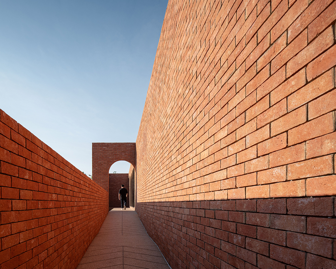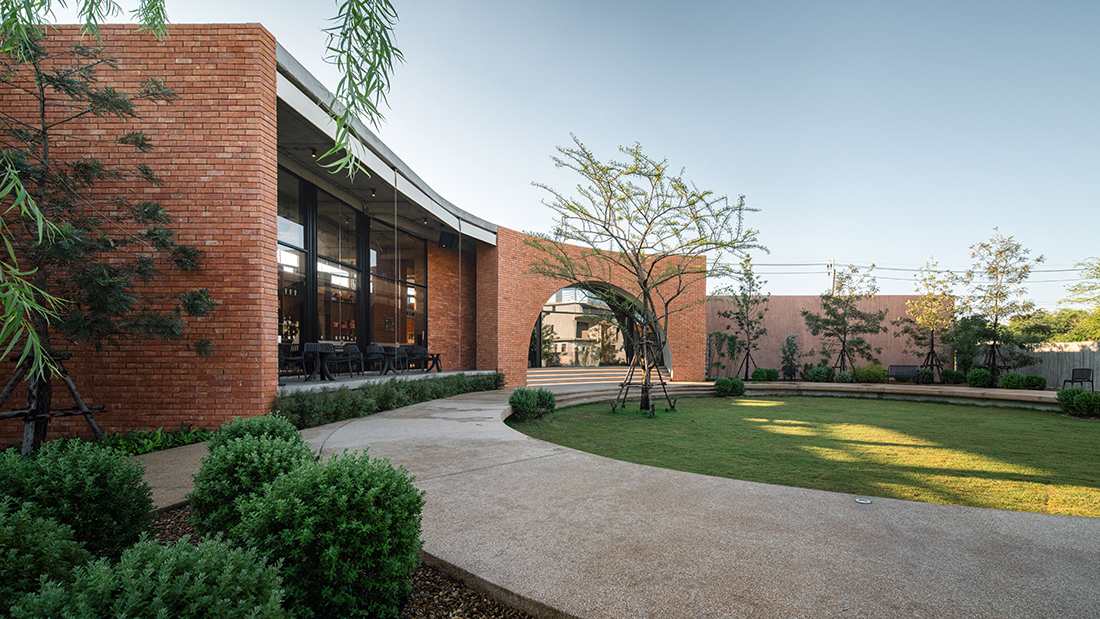 DAWN to DUSK is designed to offer a seamless experience from morning to night, combining a café, restaurant, bar, and glass house with a spacious outdoor area. The concept is inspired by the cycle of the sun – its appearance and disappearance – expressed through architectural and interior elements. A carved segment of a circle on the brick façade symbolizes sunrise and sunset, while the incomplete circle reappears as arches defining each zone.