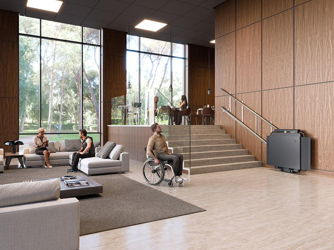 Our popular products, Delta and Stratos, have been among the best-selling platform stairlifts for several years. These stairlifts are designed to enable people with impaired mobility to climb stairs independently, whether in private homes or public buildings. Each year, we deliver more than 2.000 units of the Delta and Stratos to around 80 countries worldwide. The Delta is designed for straight stairs, while the Stratos is suited for stairs with curves.