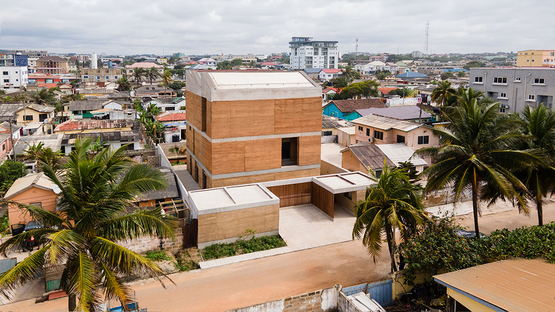 dot.ateliers is a community-oriented and ecologically responsive space for artistic production. Located within the Osu waterfront neighborhood in Accra, this is a highly sustainable artist’s residence and studio made from local materials with local skills. The monolithic, three-story structure serves as an incubator, showroom, and gathering point that advances both the Ghanaian arts scene and architectural innovation.