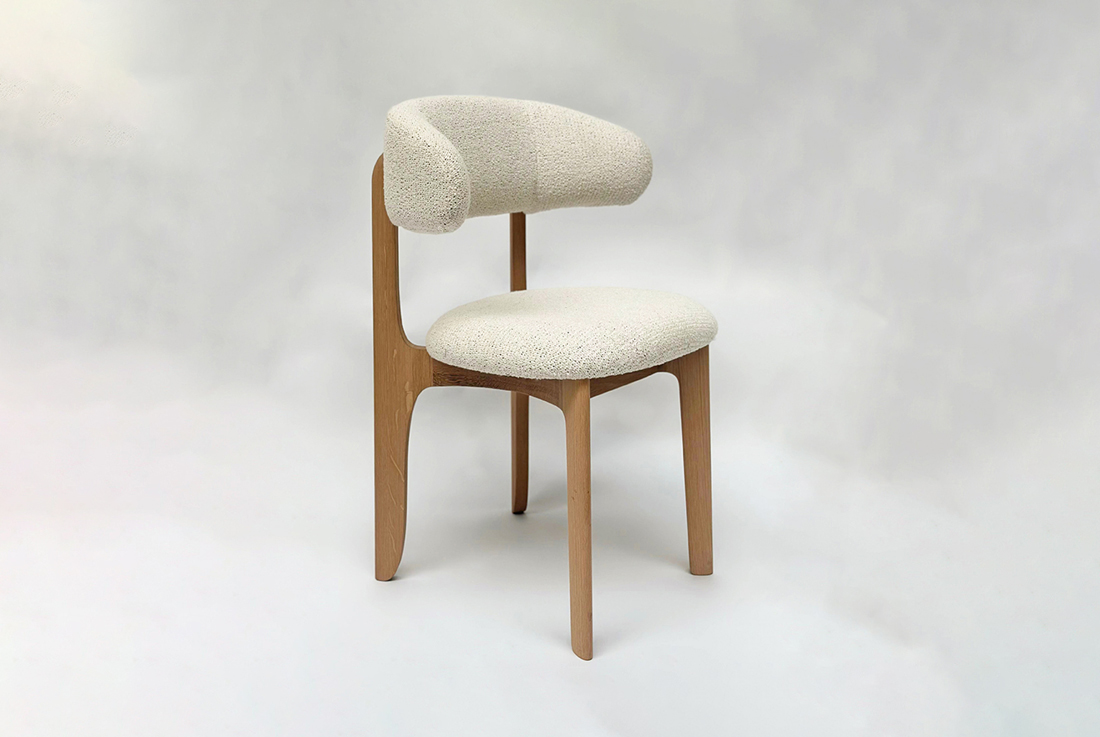 The chair’s strong presence comes from its sculpted, sophisticated legs, reminiscent of wings, which interact harmoniously with the smooth, soft backrest. The low, ergonomic back transitions seamlessly into the armrests, offering flexibility and freedom for both sitting and lounging.