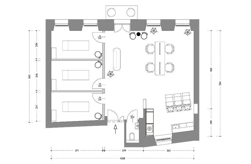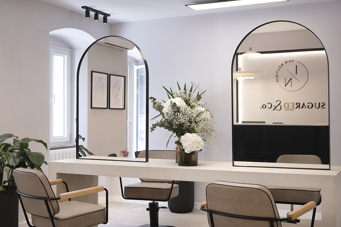 The renovation of a 75 m² space in the heart of Rijeka, Croatia, achieves a harmonious blend of functionality and aesthetic appeal. Designed to serve a dual-purpose as both a hair styling salon and a specialized depilation treatment salon, the slightly irregular layout of the old building has been thoughtfully reimagined to support both businesses.