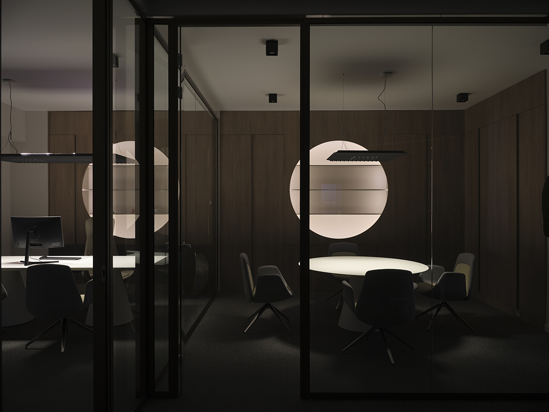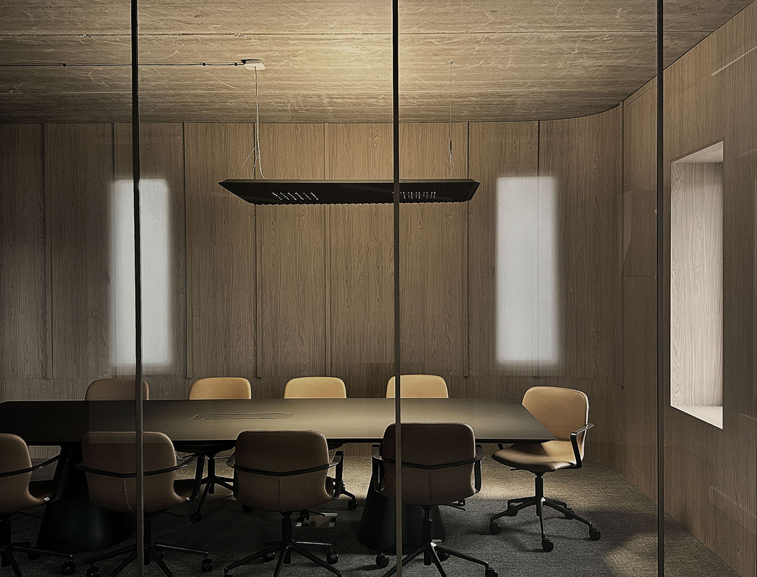 This sequence inspired an architecture that stands out subtly, appearing as a kind of question mark within its visual continuum. Constructed in prefabricated concrete – a system whose rigidity often limits architectural expression – the building embraces the imperfections of the system. The west façade, exposed to the strong Podgorica sun, features openings that provide shade, while slanted surfaces diffuse light into the interior, reducing thermal stress and linking energy efficiency with design. Every intervention in the building unfolds as a response to the site’s conditions and the mechanisms of the client’s workflow.