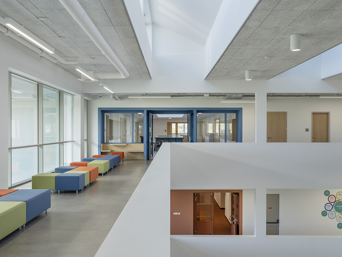 The Hungarian Ecumenical Interchurch Aid Organization, which supports those in need regardless of nationality, religion, or ideology, aimed to create an inspiring educational environment for young people preparing to choose a career by establishing this school. Focusing primarily on economic and logistical skills, the school’s architecture reflects the principles and core values of the organization, including respect, trust, expertise, quality, learner-centeredness, openness, cooperation, community, Christianity, and sustainability.