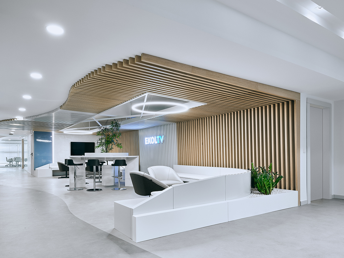 The Ekol TV Media Center Project spans 3.800 sqm across three floors: an open office floor, a studio floor, and a management floor. Developed from a repurposed space, the project embodies the institution’s innovative vision while addressing the technological needs of a modern broadcasting facility.