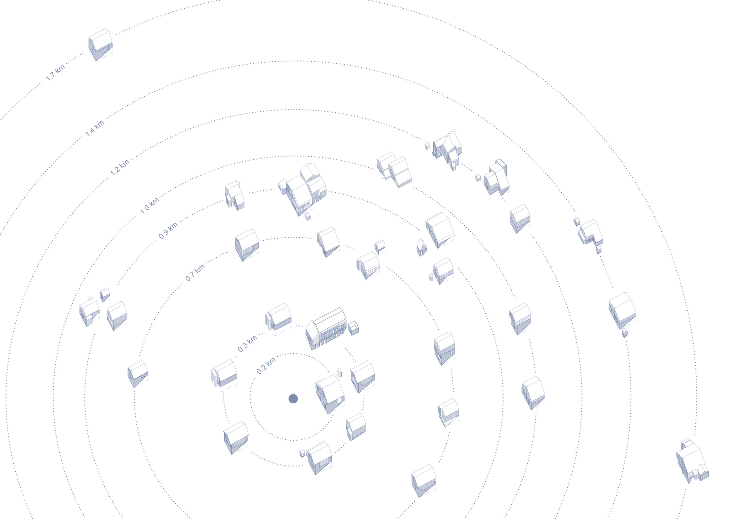 This research investigates the settlement patterns of historical Alpine centers, characterized by the maso (traditional farmhouse) system in the valley floor and the malghe or baite (summer mountain huts) at higher altitudes. The former strongly influenced the distribution and development of the main hamlets. The focal point of these communities is the 'caseificio turnario' (cooperative dairy)—a physical space shared by all inhabitants. The management of milk processing and cheesemaking shapes distinct landscapes across the Alps. The proximity to this communal space adapts to the local topography and morphology, giving rise to diverse settlement models. These shared spaces were strategically positioned; where this is not the case, the landscape appears further fragmented. Beyond the strategic placement of communal areas within the built environment, the distribution of private elements within the maso system—such as the vegetable garden and the dwelling—is also deliberate, with the house often placed in a commanding, 'overseeing' position. Different territorial characteristics thus dictate diverse construction solutions to achieve common goals.