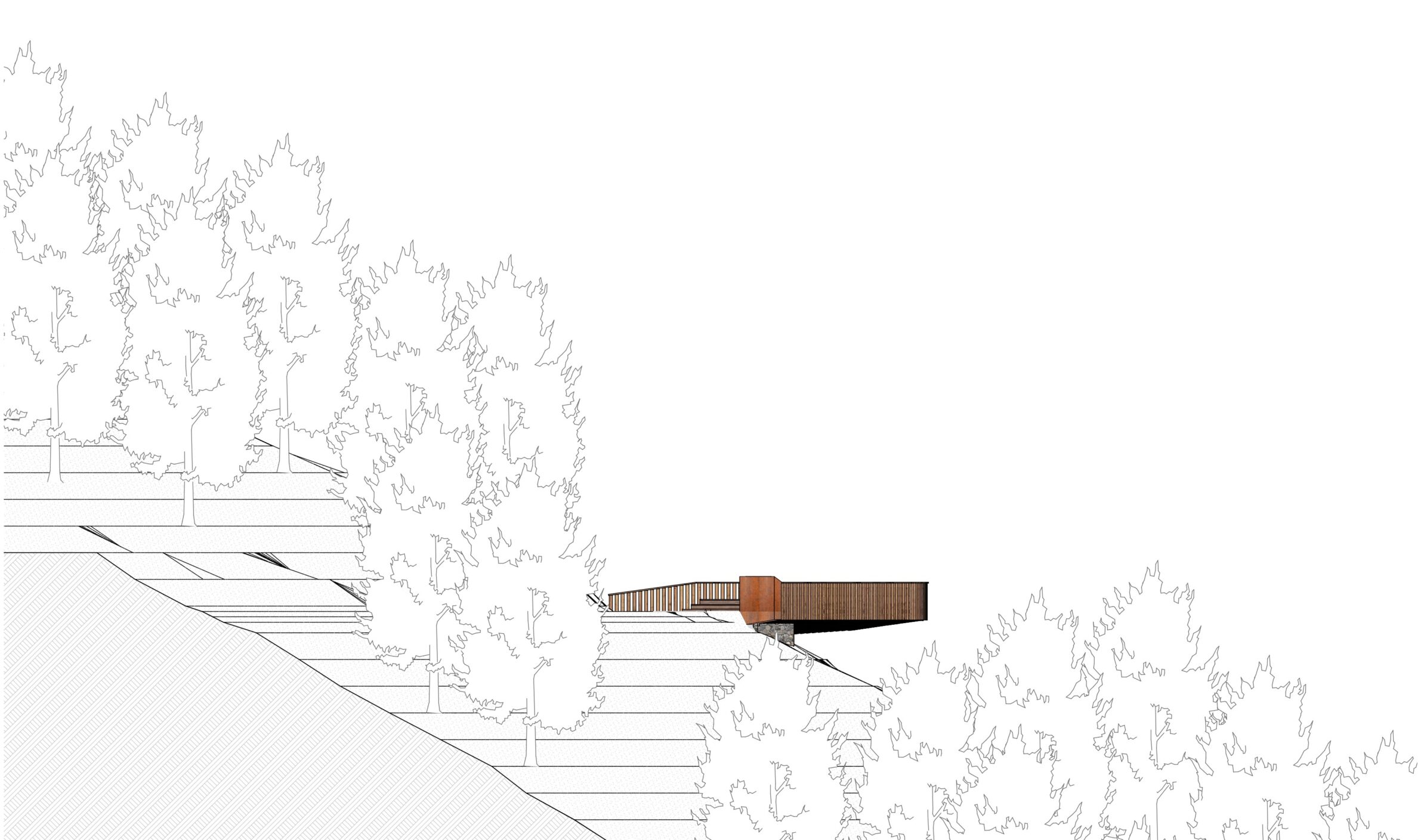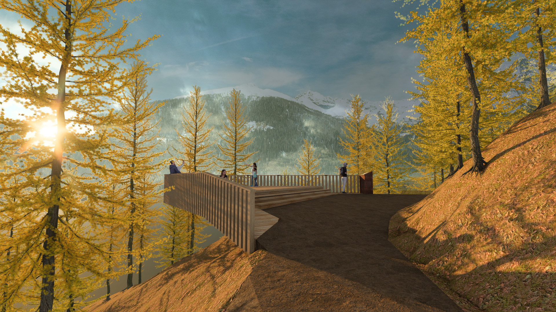 This project, part of the new “Thematic Trail of Milk and Mountain Farms” in the Stelvio National Park, is situated along a forest road, serving as a link between the valley floor, the forest, and the mountain pastures. The design is based on an axis of symmetry that extends the path outward. The pedestrian path is bordered by an internal raised platform that serves as an integrated linear seating area and elevated terrace, offering users new views of the surrounding landscape.