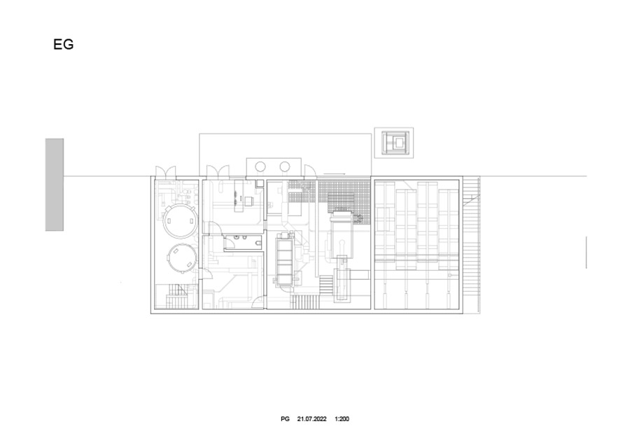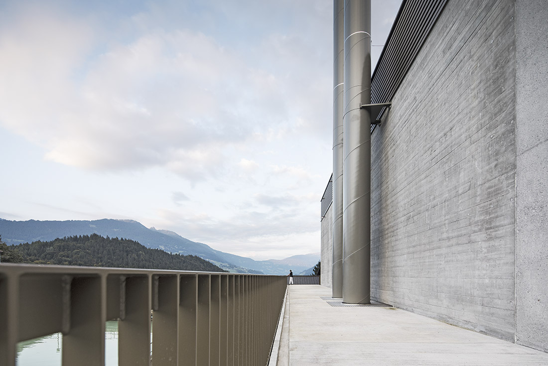 Technical innovation and ecological sustainability are intertwined with the added value of the infrastructure building for the surrounding tourist region. The primary objective was to construct an architecturally sophisticated shell to house various energy systems, fitting for its location at around 1.000 meters above sea level amidst the Montafon mountains. Situated above a vast reservoir and adjacent to a popular hikers’ car park, the building serves as a public space, as evident in the visitor terrace overlooking the valley. It provides sustainably generated heat and cold for the neighboring 5-star hotel, scattered settlements, and electricity.