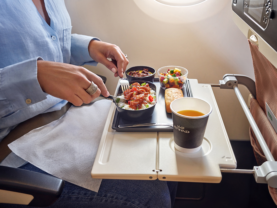 deSter designed and developed this fully reusable and recyclable Economy dining tableware collection for Etihad Airways to transform a traditionally disposable onboard ritual into a premium, circular product experience. Comprising the tray, casserole dish, side bowls, lids, and platter, the system is made from high-quality, recycled plastic and engineered for repeated use in the demanding context of commercial aviation.