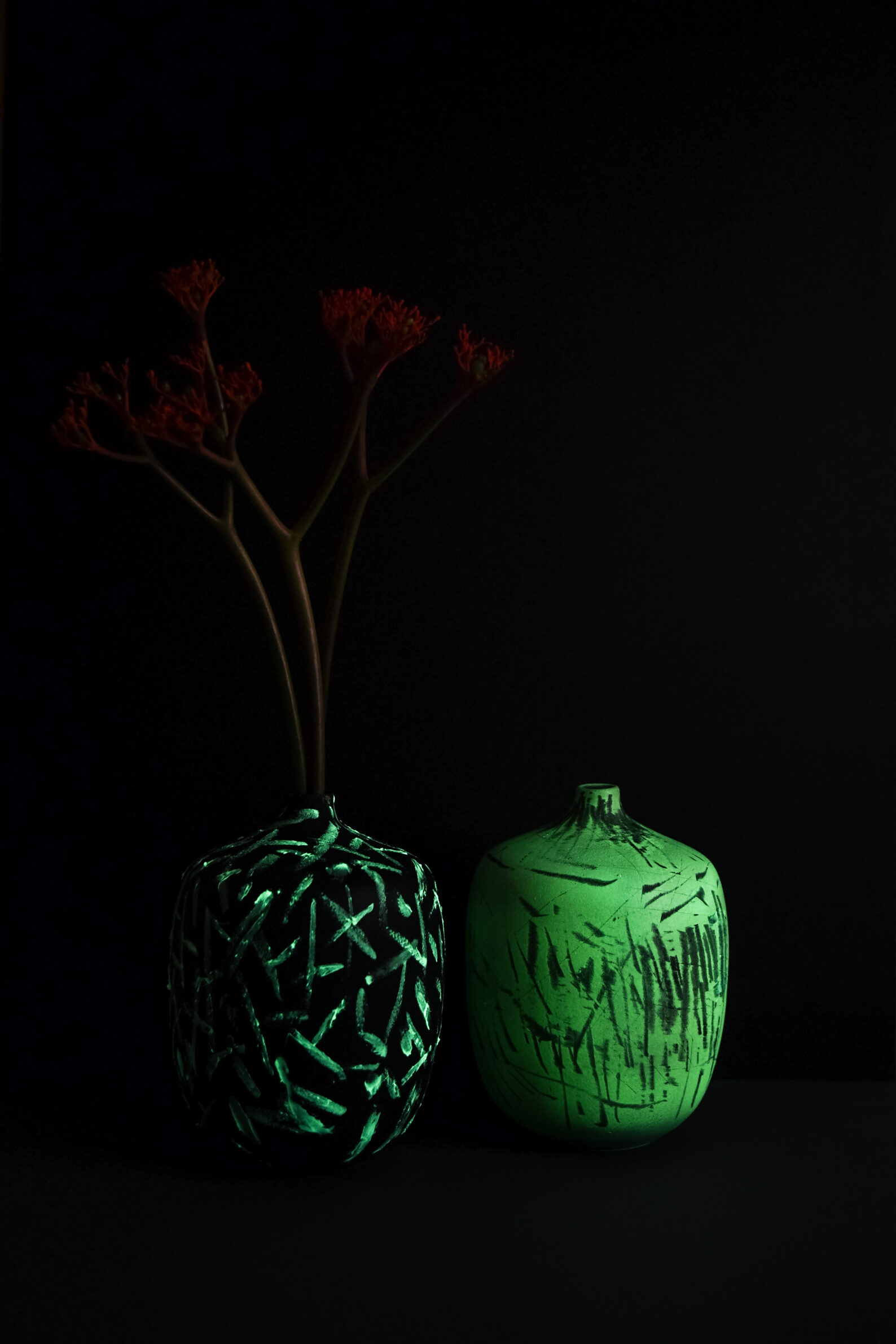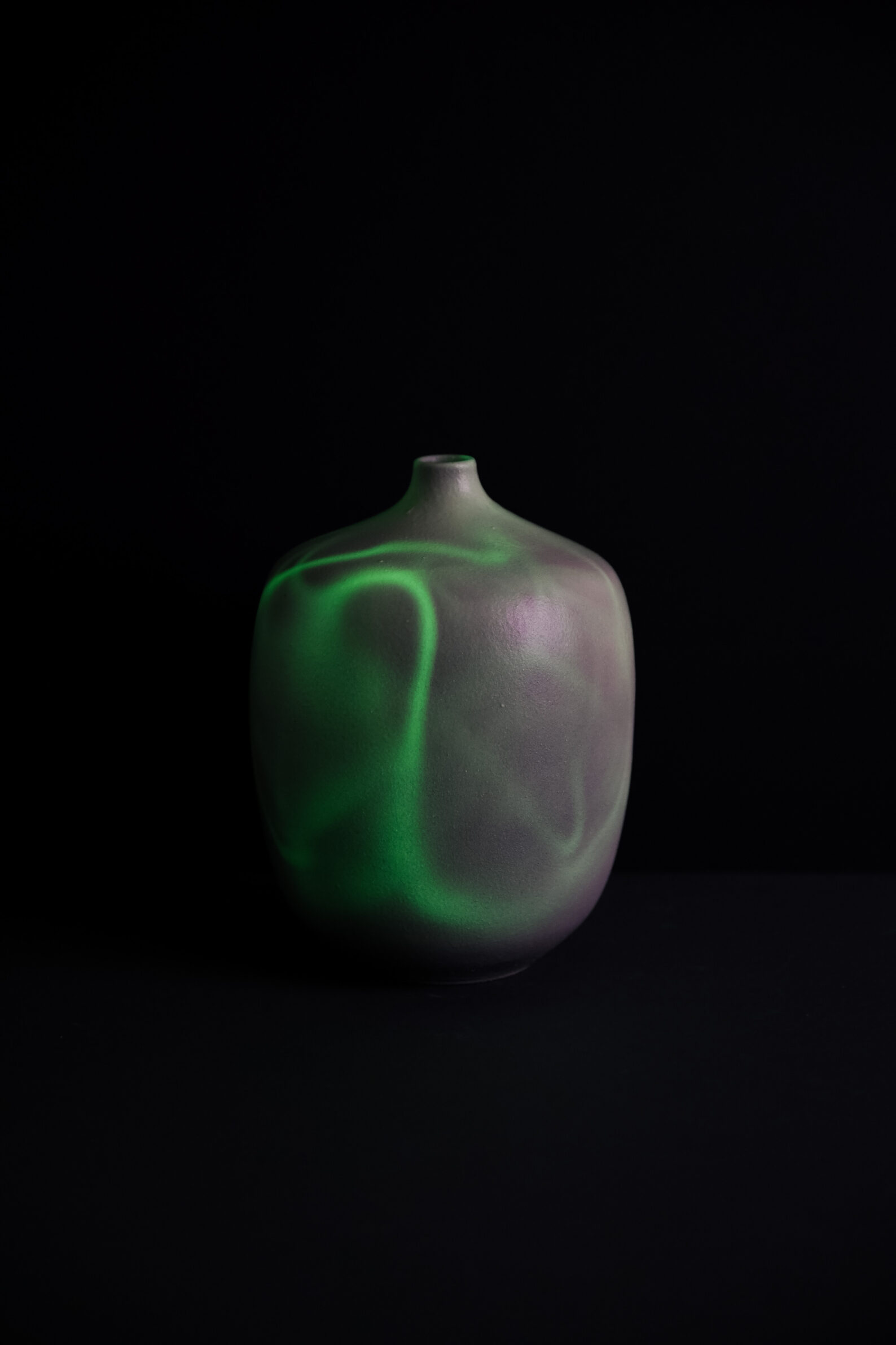 The NIGHT LINE project represents an authorial design experiment focused on integrating functionality and aesthetics within a continuous 24-hour cycle. Its primary objective is to develop an object whose visual qualities dynamically transform in response to changing light conditions, resulting in distinct perceptual characteristics during the day and at night. The vase, as the central medium of this concept, transcends the notion of a static object—while in daylight it exists as a materially and formally defined artifact, in darkness its physical presence visually dissolves and is replaced by a luminous expression. This duality establishes two complementary visual modes that together construct a unified identity of the object. Executed in porcelain with a fluorescent surface treatment, the design achieves the effect of “two designs in one,” reinforcing the concept of variability and continuity of visual experience across the day-night cycle. The project further opens possibilities for developing diverse variations and for exploring design approaches that respond to light as a fundamental factor of perception.