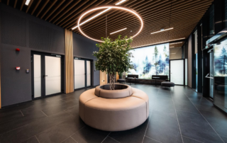 The adolescent psychiatry department is designed to provide retreat and protection while ensuring necessary supervision and control. The building fosters an inviting atmosphere that counters the stigma often associated with psychiatric care. The visible solid wood construction contributes to a warm and welcoming environment, breaking with the traditional, sterile hospital aesthetic.