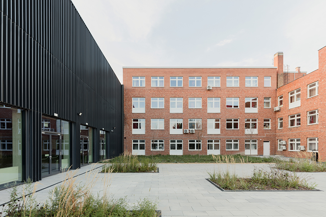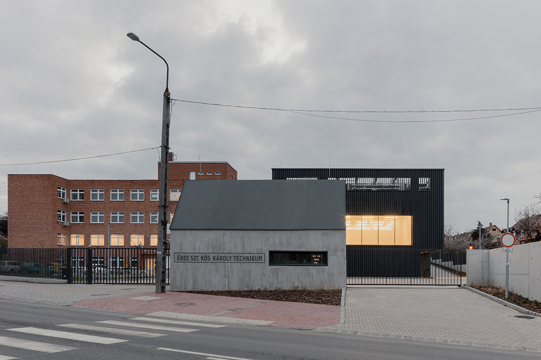 The project aimed to expand the vocational school’s 1970s building with new classrooms, a sports hall, and a workshop wing. The primary challenge lay in achieving a harmonious integration between the existing and the new structures, ensuring that the extension would serve as an organic continuation of the original building, while together forming a renewed, contemporary urban ensemble.