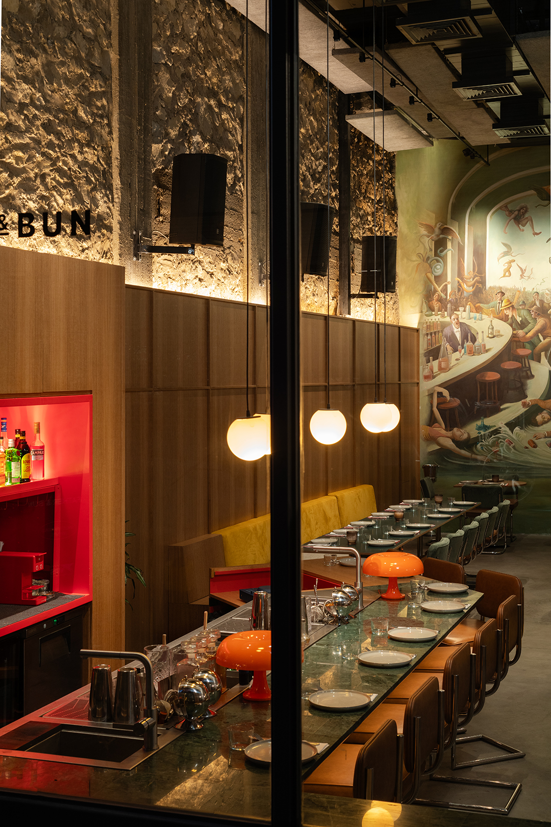 This restaurant bar draws its inspiration from a blend of mid-century Manhattan venues, Wes Anderson’s whimsical aesthetics, and the refined comfort of high-end American diners. The concept centers around authenticity, nostalgia, and storytelling – with a strong emphasis on raw materials and spatial intimacy.