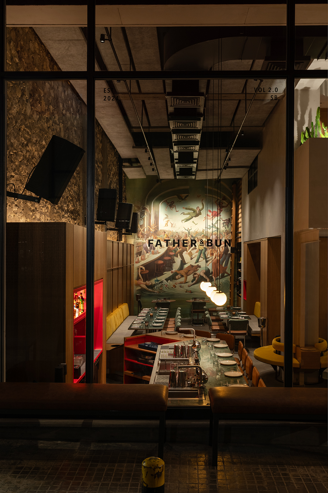 To support both form and function, the ceiling was left raw, with acoustic foam panels seamlessly integrated to address the issue of echo – an essential, yet invisible, element designed, produced, and installed by 21 dB. Lighting played a key role in defining the spatial atmosphere. Designed and locally produced by PSLAB, the concept focused on technical fixtures that remain unseen – casting focused, theatrical beams that highlight the table and reinforce the gourmet nature of the dining experience. A clever interplay of cladding and layout helped resolve the limitations of the narrow space.