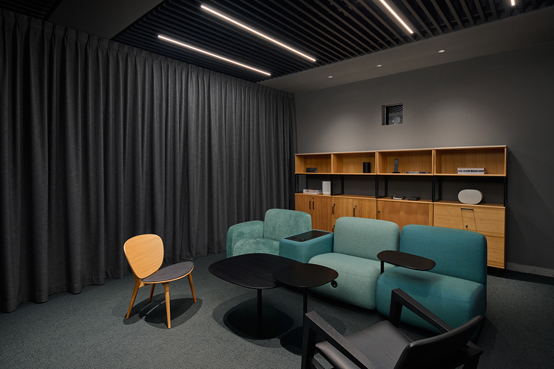 Interactivity is a central theme, with integrated management systems offering control over lighting and curtains. Beyond its function as a showroom, the space includes a workspace, a meeting room, a kitchenette, and a hidden cinema room featuring an invisible home audio system. Designed to create a deep connection between visitors and the products, the showroom elevates each brand, ensuring they stand out in a harmonious and engaging environment.