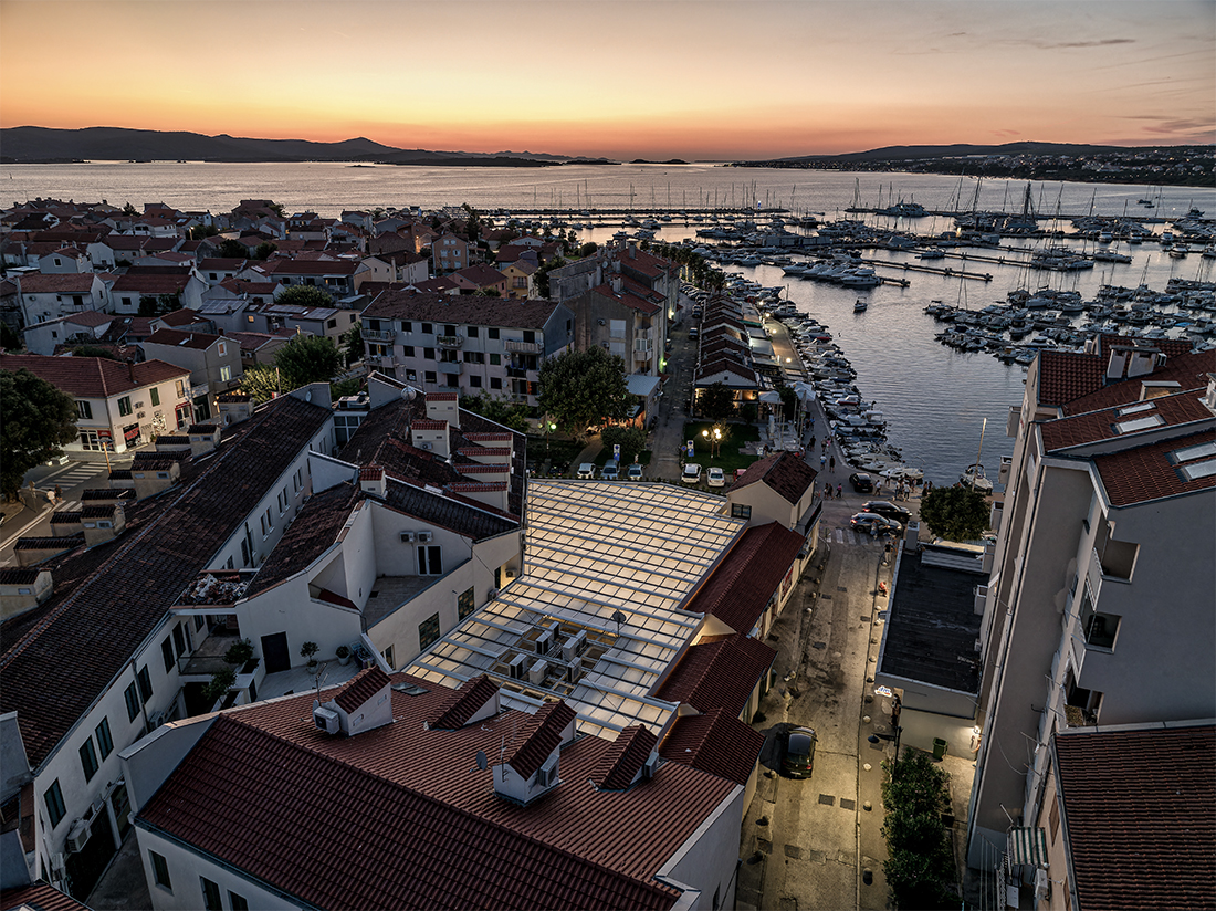 The market area in Biograd was neglected and largely unknown to visitors, hidden behind the existing, street-facing fish market building with narrow and unnoticeable access points. This proposal seeks to integrate the market into the urban fabric by removing the existing building, reconnecting the space with the city, and inviting interaction.