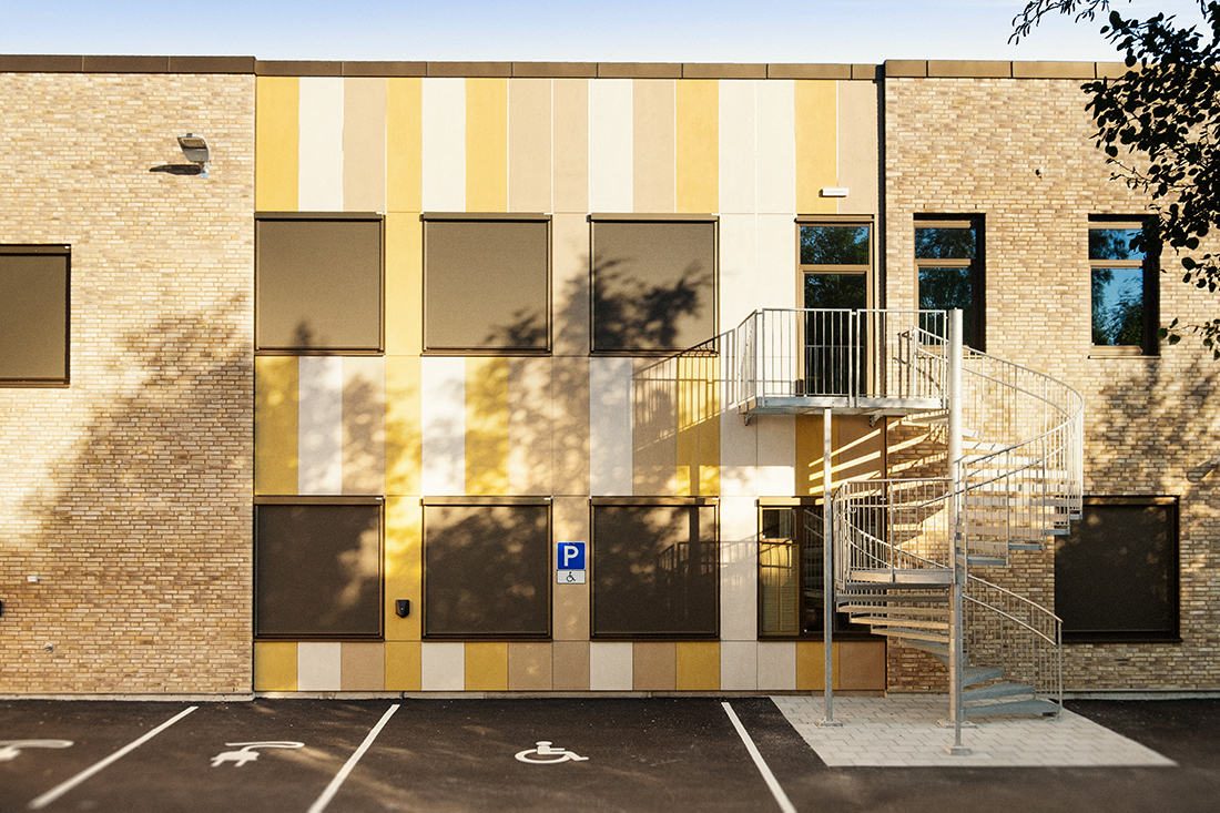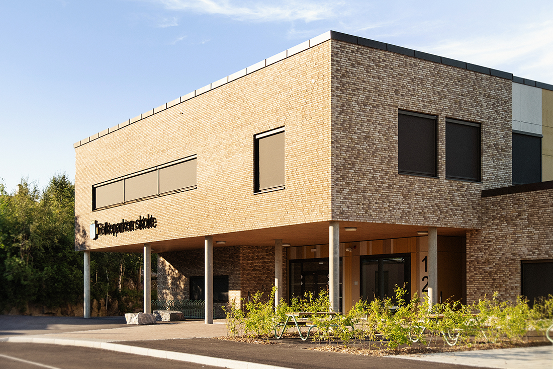 The school is located on the edge of forest and parkland, allowing nature to flow directly into the learning environment. Outdoor areas extend the classroom and encourage play, exploration, and physical activity, while flexible indoor zones, daylight, and robust, natural materials create a warm and inclusive atmosphere. The material palette – RTM 545 Atlas Brick from Randers Tegl, eloxated aluminum C33, and Swisspearl panels – ensures durability and timeless character. Folkeparken School is conceived as more than a building: it is a framework for well-being, resilience, and future learning, serving both students and the wider community.