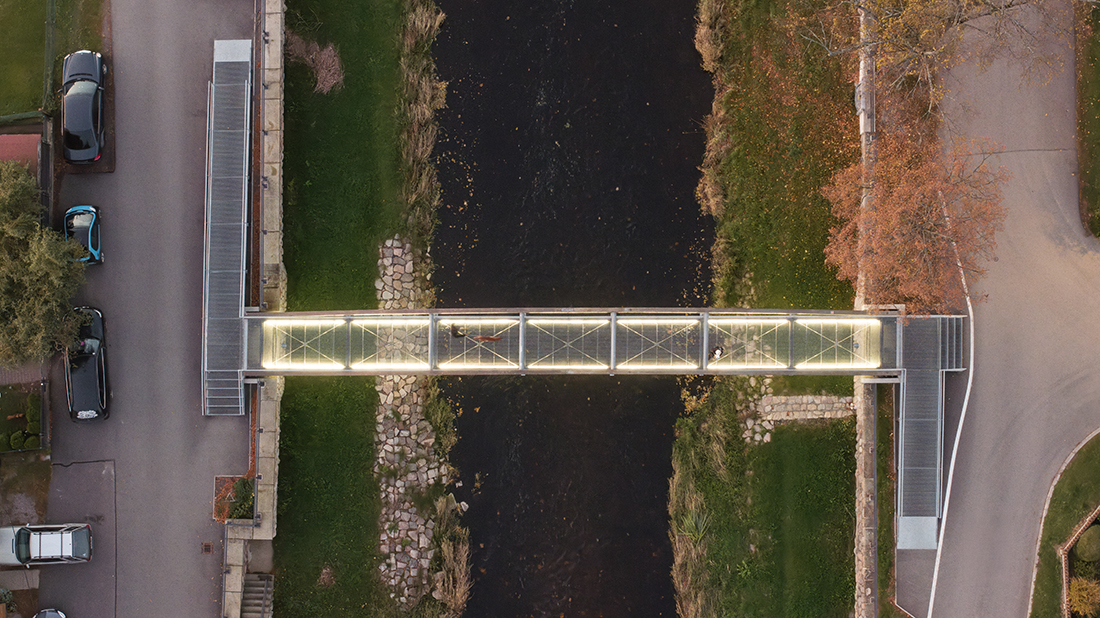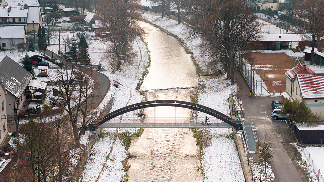The new footbridge replaced a classic, arched, concrete footbridge from the first half of the last century. The supporting structure consisted of a pair of concrete arches, each 350 mm thick. The footbridge was part of the town’s skyline and was popular with the locals. Unfortunately, the original structure was in such poor condition that it had to be replaced with a new one. We came up with the concept of keeping the exact silhouette of the original footbridge’s concrete arch and casting the arch from UHPC.