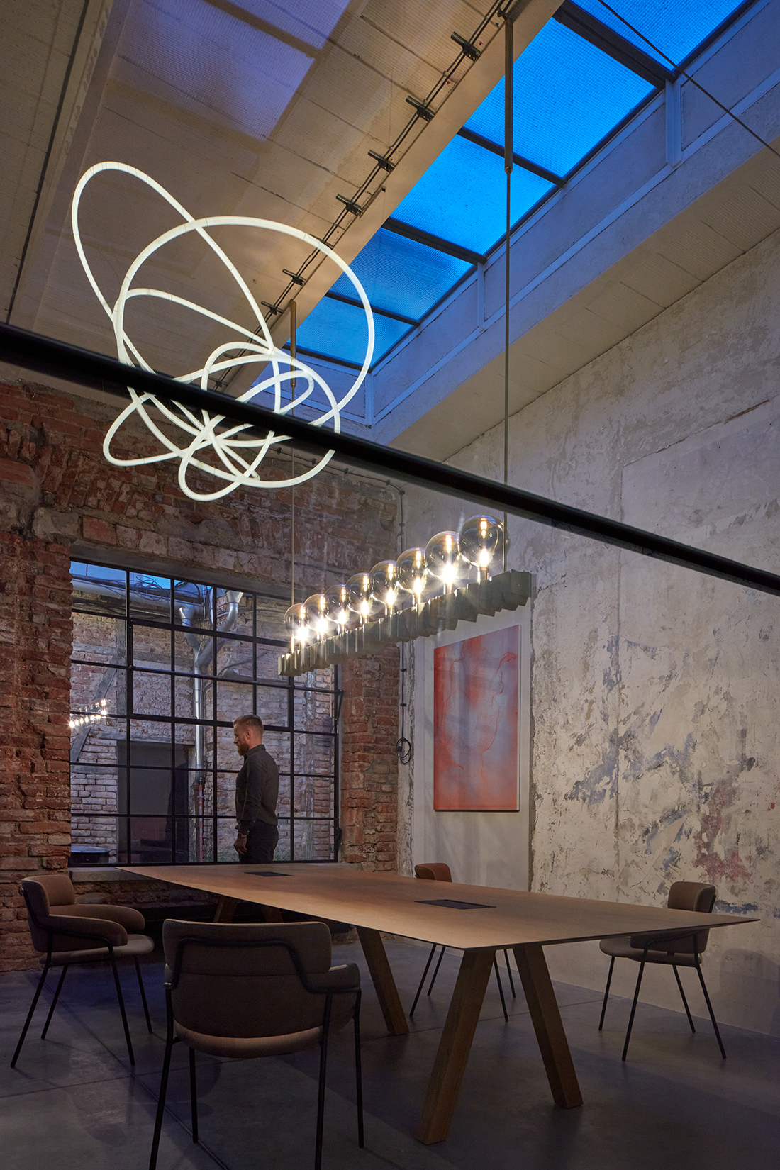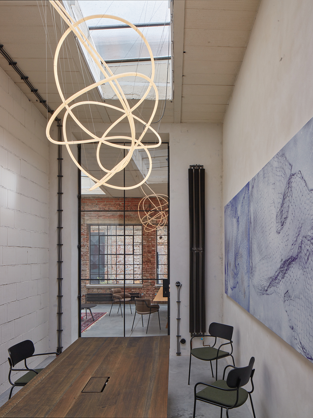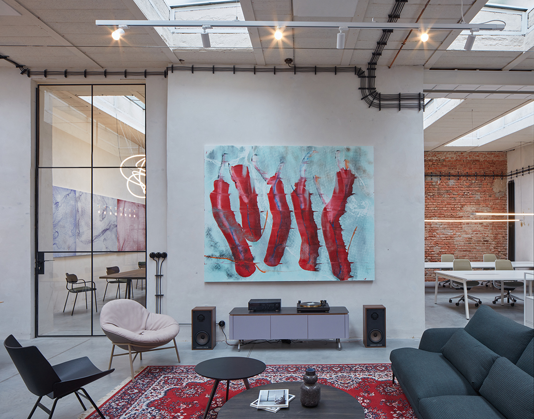 Every corner is thoughtfully designed, supporting diverse purposes from product presentations to coworking meetings and events, seamlessly blending functionality with inspiration. Marslab’s curated designs are on display, featuring Czech and international products, including fixtures by Jiří Krejčiřík and furniture from Viccarbe and Arrmet. This harmonious integration of aesthetics and functionality creates a truly memorable experience.