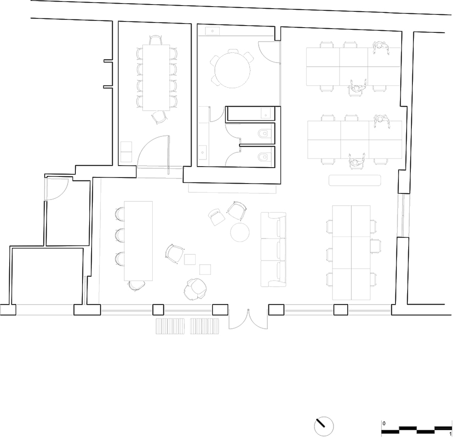 The term ‘foyer,’ originally meaning a hearth, has evolved to describe a social hall designed for relaxation during breaks. This multifunctional space embodies the Marslab store concept, serving as a showroom, coworking hub, event venue, and photography studio. With its industrial design and serene atmosphere, the space fosters both focused work and creativity.