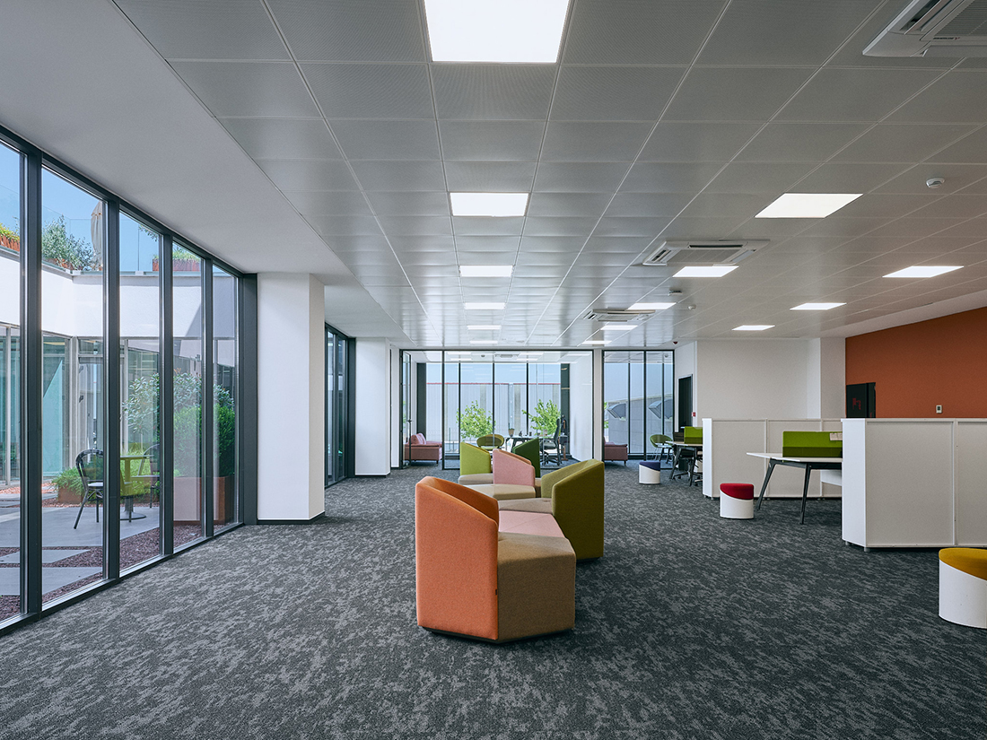 In addition to bright and airy workspaces, the design includes open terraces and garden areas, providing employees with refreshing and enjoyable spaces.