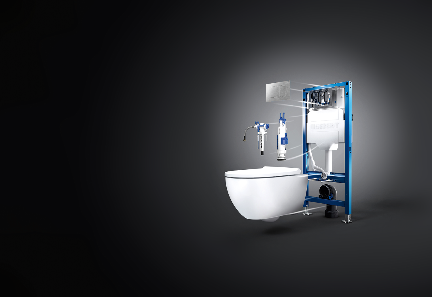 The Geberit WC system noticeably reduces the noise level created when flushing the WC and refilling the cistern. This is thanks to a new generation of flush and fill valves and TurboFlush technology, which make the flushing process much quieter than with other flush technologies.