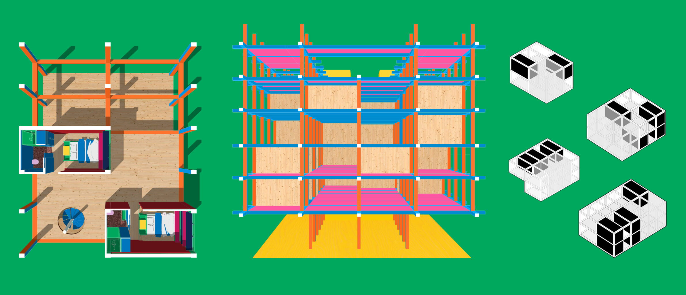 The proposal follows a compositional progression: from the autonomous room, to typological assemblies, to a 'Τetris' organization, and finally to multi-level clusters. Scaled up to the urban condition, the project suggests that the city itself can be understood as an expanded network of rooms. Ultimately, the work advances a political reading of architecture, proposing that collective living can be rethought as a system that enables the coexistence and friction of distinct individual worlds, continuously negotiating their boundaries.