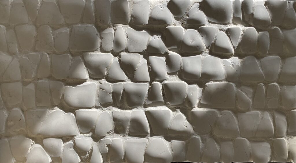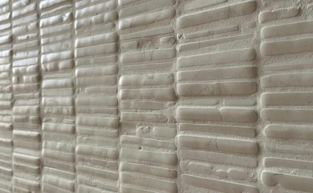 “For myself, the Timeworn mosaic in my home is more than just a decor piece – it embodies the essence of existence. Living with this 100% natural stone, marble creation, I am reminded daily of the untouched beauty of our nature. Each hand-cut piece, deliberately unique, highlights the sacredness of imperfection. The manual installation on mesh, with minimal joints, brings a sense of primordial authenticity that stands out in today’s world of artificiality.” Giovanni Barbieri