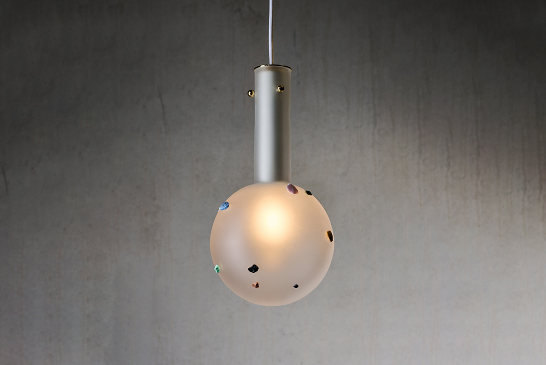 The Konfeta collection embodies the theme “Celebration of Life” through vibrant colours and playful forms. Each piece is adorned with collages of coloured glass fragments, evoking surprise and a jubilant festive atmosphere. The confetti-like