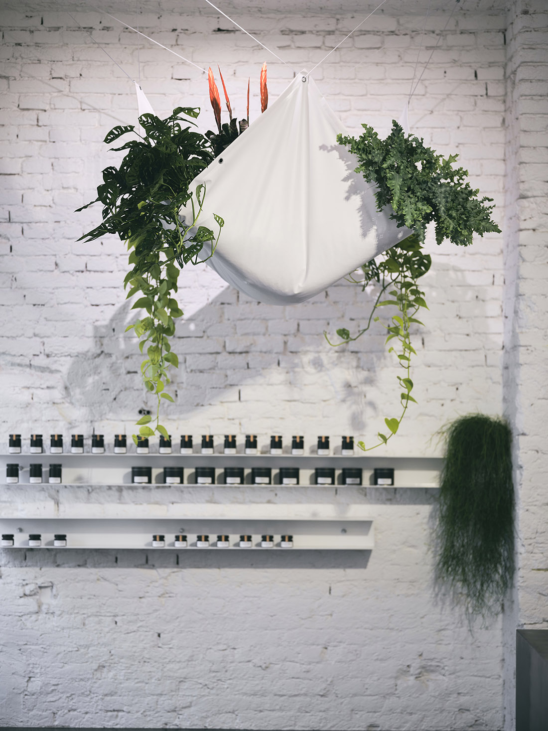 Hanging Gardens were initially designed for the Van den Berg Spice House in Graz. Inspired by the unique urban location of Van den Berg, we envisioned a mini-oasis—a hidden world for spice lovers amidst the city’s hustle and bustle. The “Hanging Gardens” are a tribute to the diversity and intensity of the spice world. With spices showcasing an impressive range of colors, textures, and properties—from healing and preserving to spicy and mild—we translated this richness into form, color, material, and light.