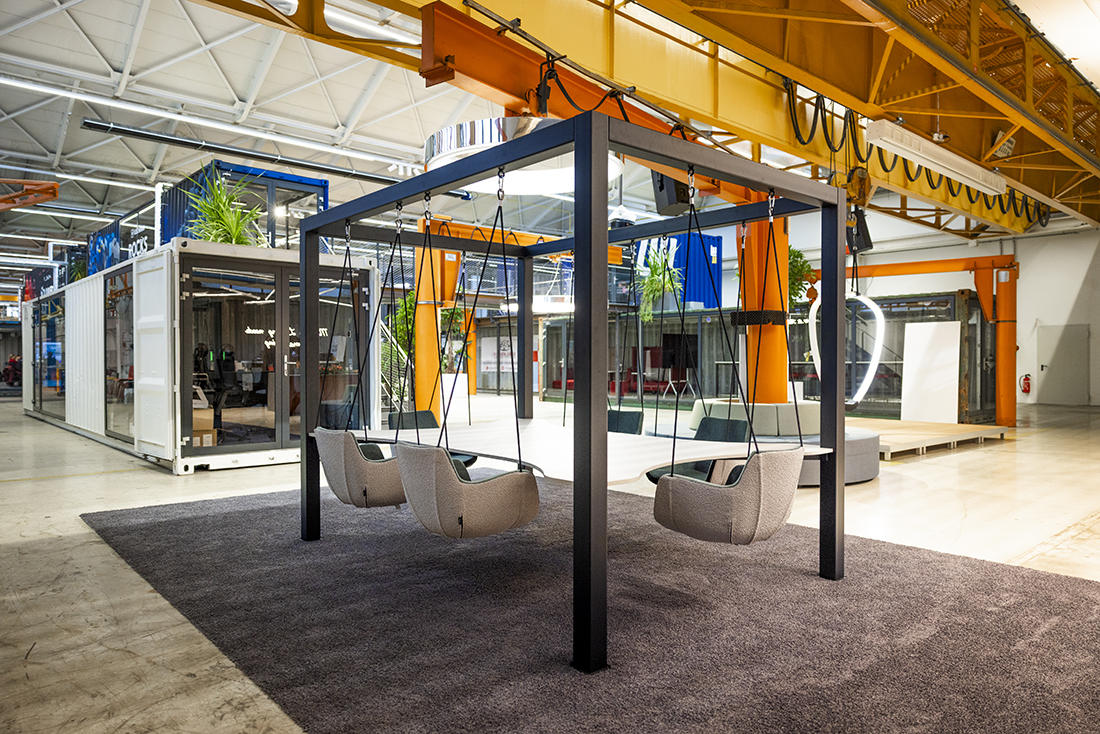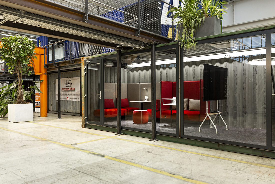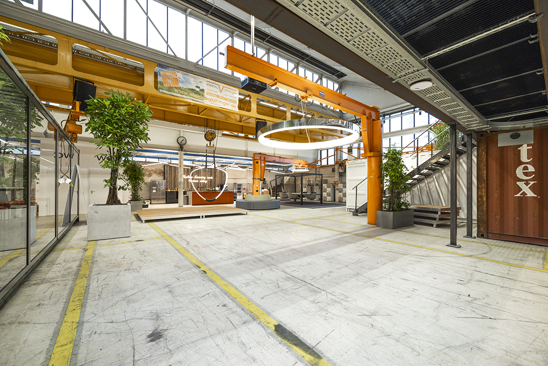 A central marketplace with a cafeteria and meeting rooms fosters exchange and interdisciplinary collaboration. The industrial aesthetic, and the flexible spatial structure gives the campus its distinctive character, creating a vibrant place where ideas become reality.