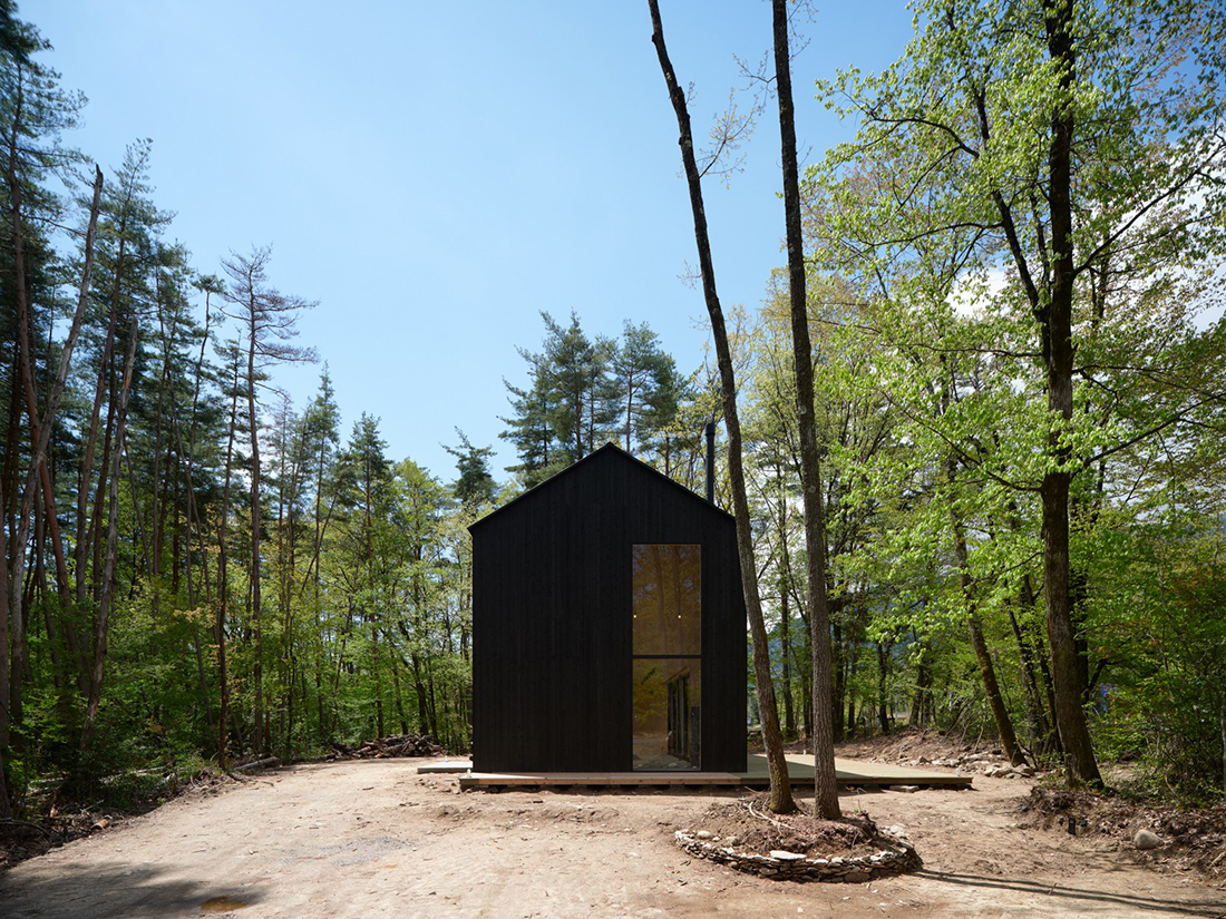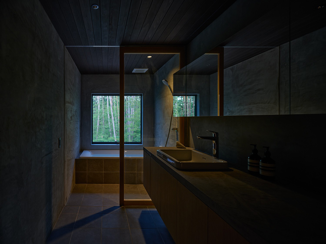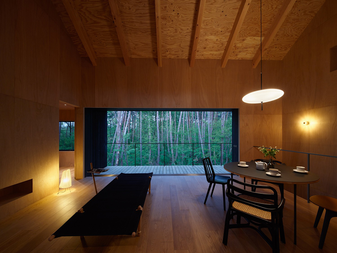 By gently drawing the flow of people and activity into the natural surroundings, the building acts as a mediator between the local community and the forest. In contrast, the second-floor residence opens deliberately toward the forest on the opposite side of the road, minimizing the presence of domestic life from the street. Each room frames views of the surrounding greenery, bringing the atmosphere of the forest into the interior and creating a calm living environment in harmony with nature. The exterior design prioritizes integration with the natural surroundings. The façade is finished with charred cedar, allowing the building to age gracefully and blend into the landscape with a quiet, understated presence. At a site where urban convenience and natural richness intersect, this architecture carefully weaves together the relationship between “openness” and “enclosure”.