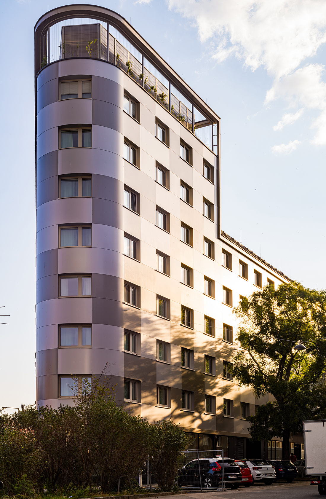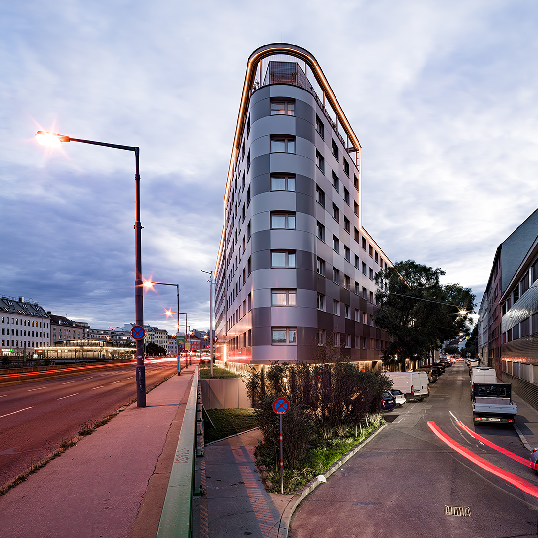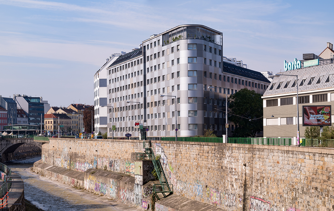 Sculptural elements, including a distinctive upper frame, enhance the building’s visual rhythm, while the transparent ground floor, featuring a full-height curtain wall, seamlessly connects the interior with the surrounding environment. This architectural approach ensures a sustainable, timeless design that integrates effortlessly into Vienna’s evolving cityscape.