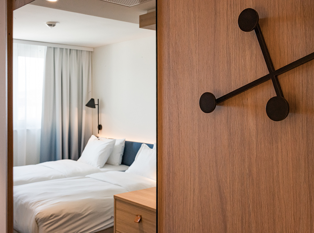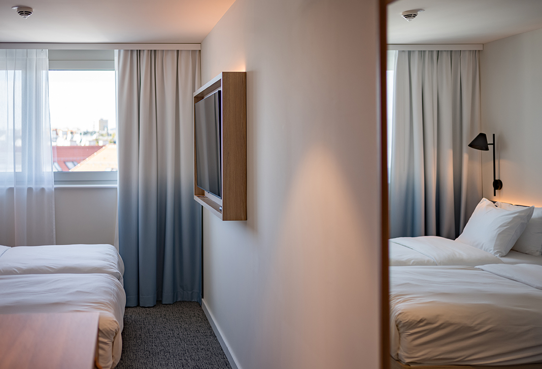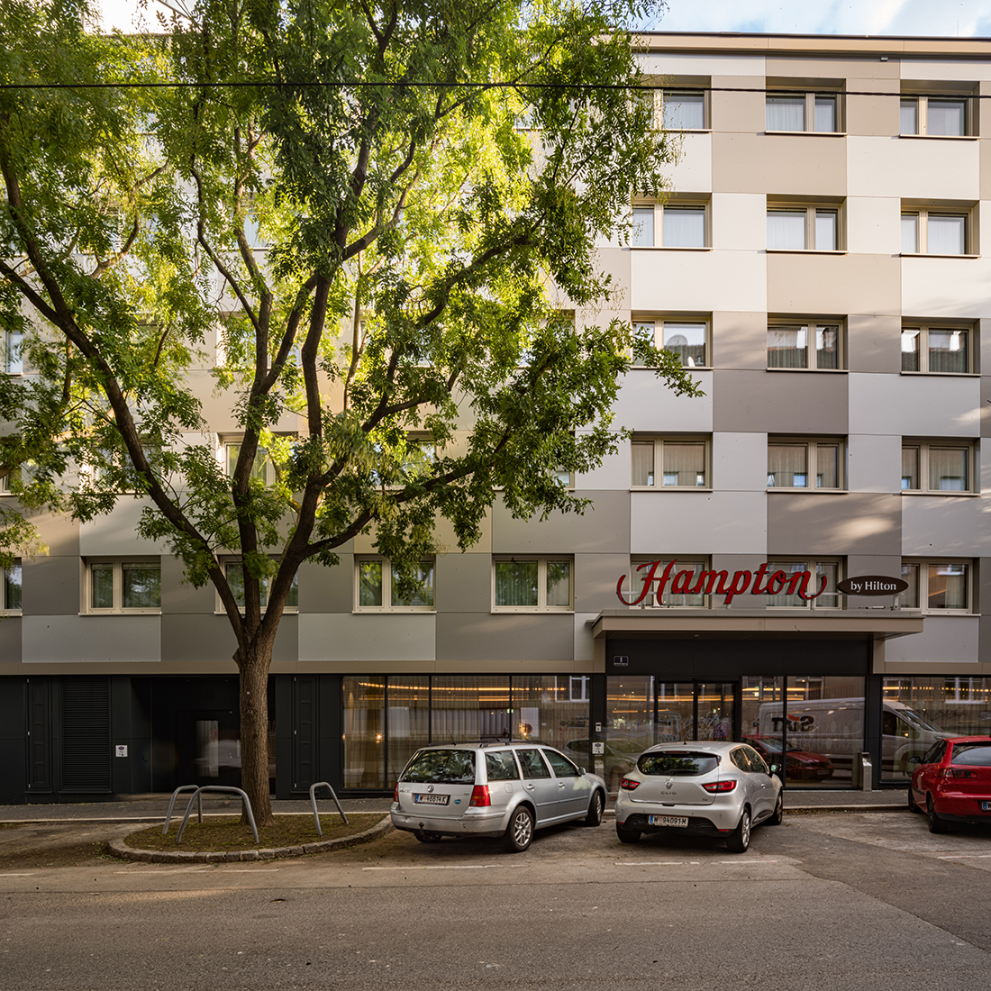 Europe’s largest Hampton by Hilton hotel, which opened in August 2024, stands as an architectural landmark in Rudolfsheim-Fünfhaus, an up-and-coming district of Vienna. Spanning 15.500 m² across nine floors, the hotel features 355 modern rooms, catering to both business and leisure travelers.