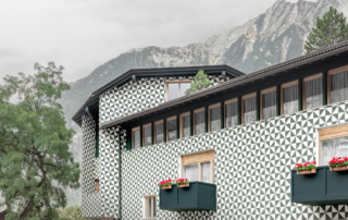 Three building volumes are inserted on different levels on a steep slope generating a well studied series of intimate inside and outside spaces. Every room and every suite brings you in direct contact with the fir needles’ smell, the early morning’s dance of the squirrels and the impressive colours of the dolomite rocks bathed in the light of the sunset.