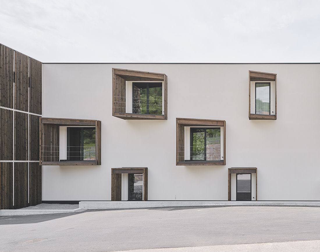 The project of Hotel Tenz in Montan, South Tyrol, updates a long-standing family-run hotel overlooking the Adige valley. Built in successive stages over time, the building evolved into an incongruous patchwork of additions. The work includes rebuilding the north guestroom unit, remodeling several existing rooms, and reshaping the lobby, bar, reception, and wellness areas.
