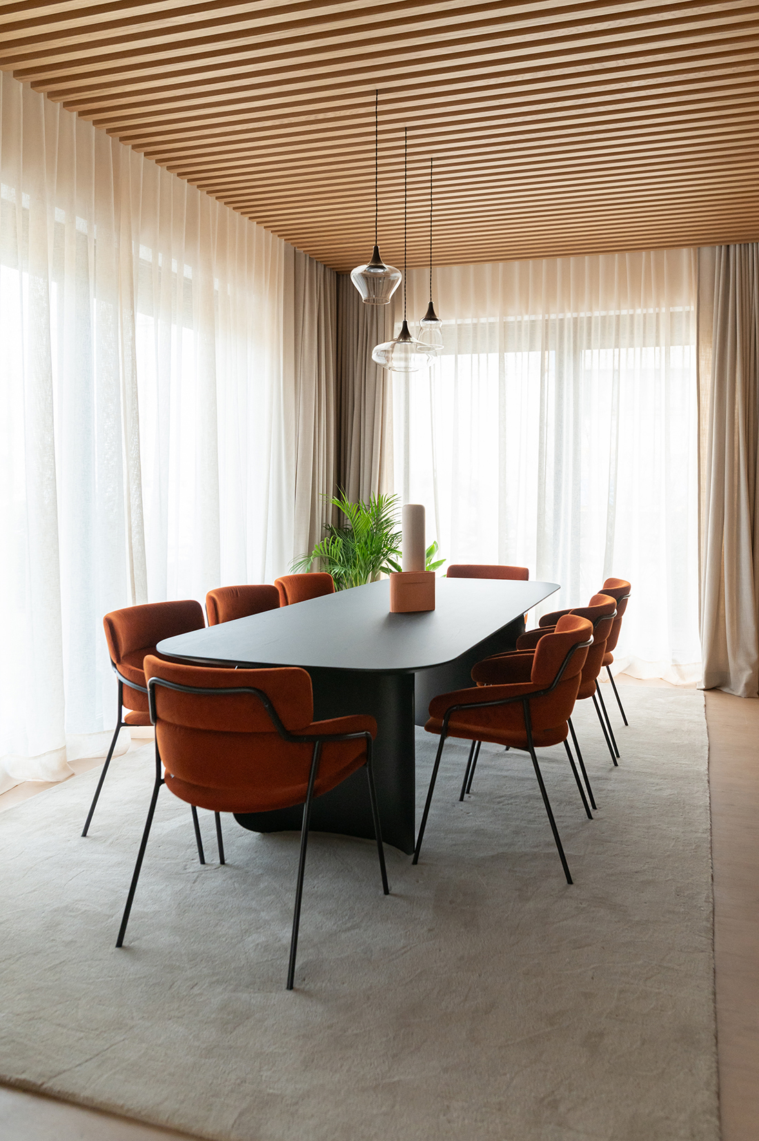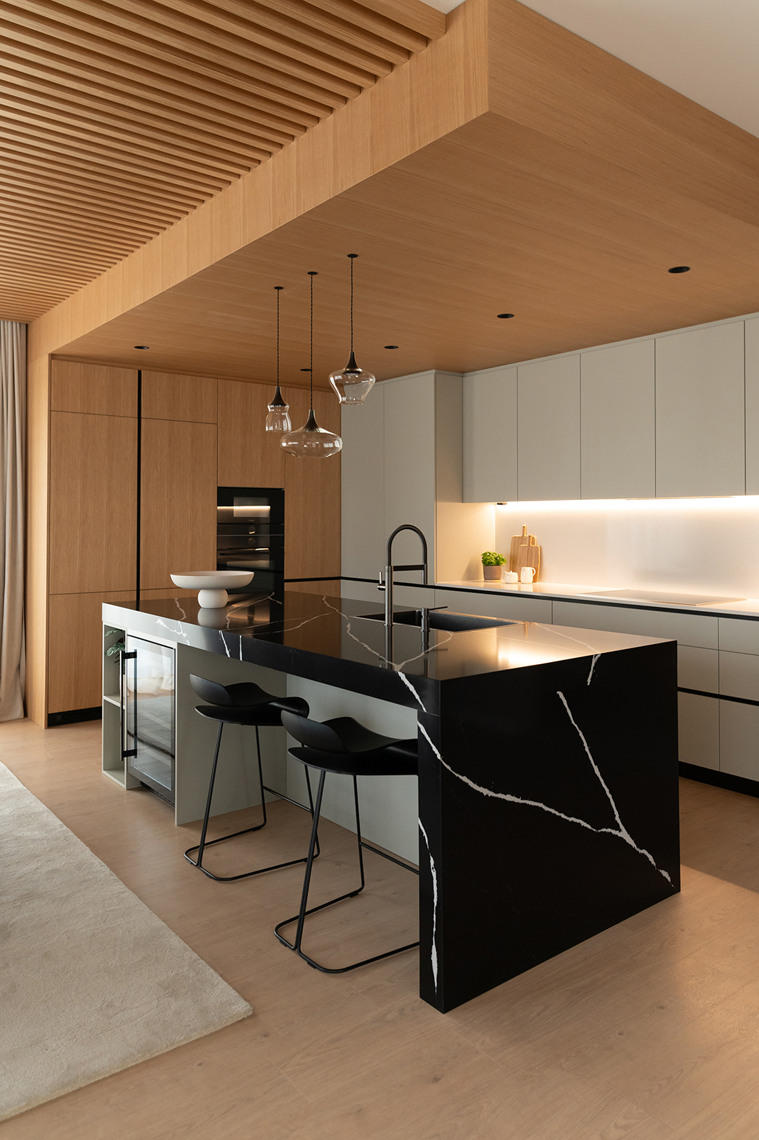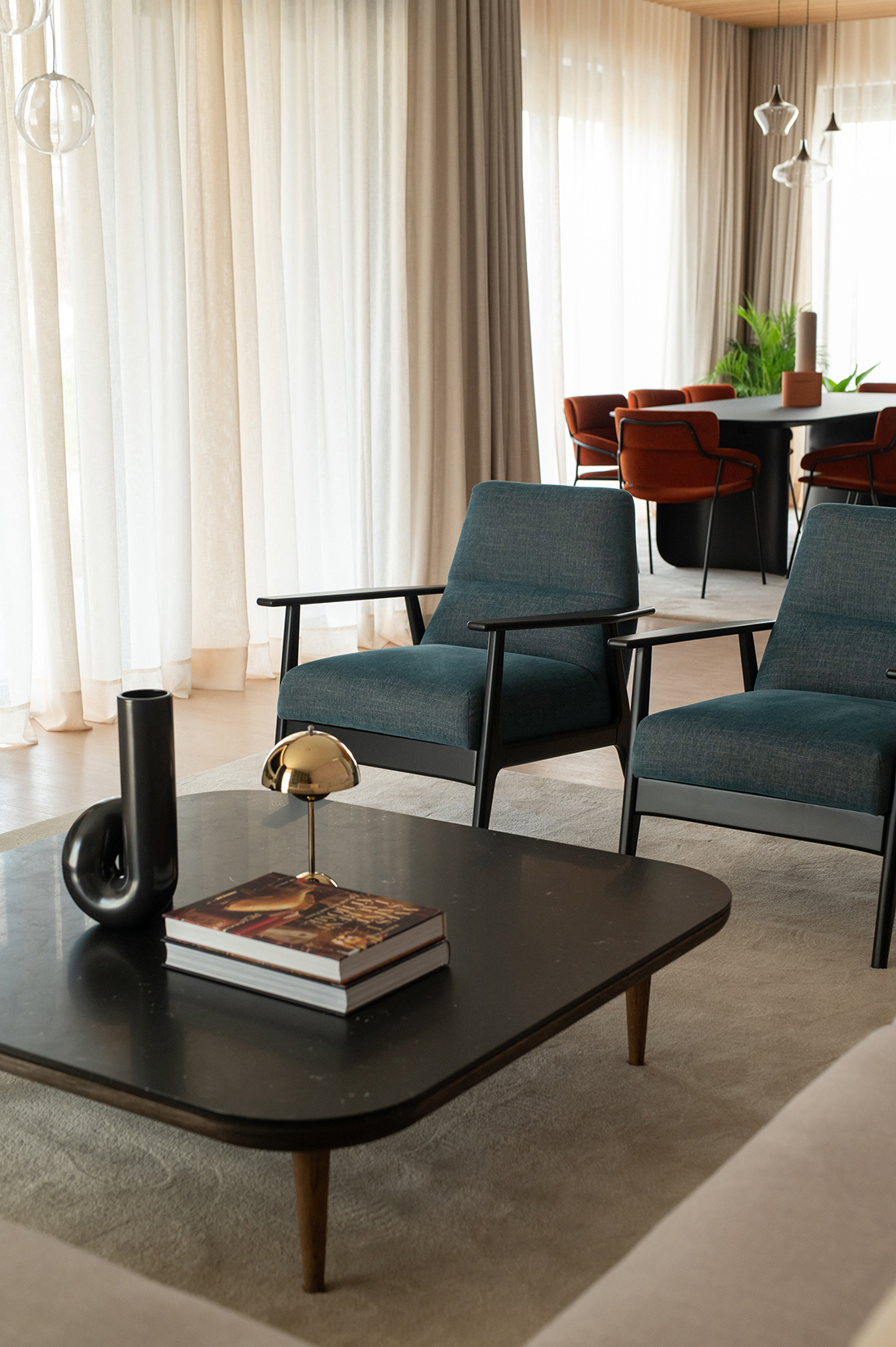 Warm wood tones, tactile fabrics, and muted colors interact to create depth and balanced contrast, while details reveal the craftsmanship behind every surface. The open plan flows seamlessly between living, dining, and private zones, encouraging effortless everyday life. Each element has been designed carefully – refined yet approachable, understated yet rich in feeling. The result is a home that celebrates balance, simplicity, and life harmony.