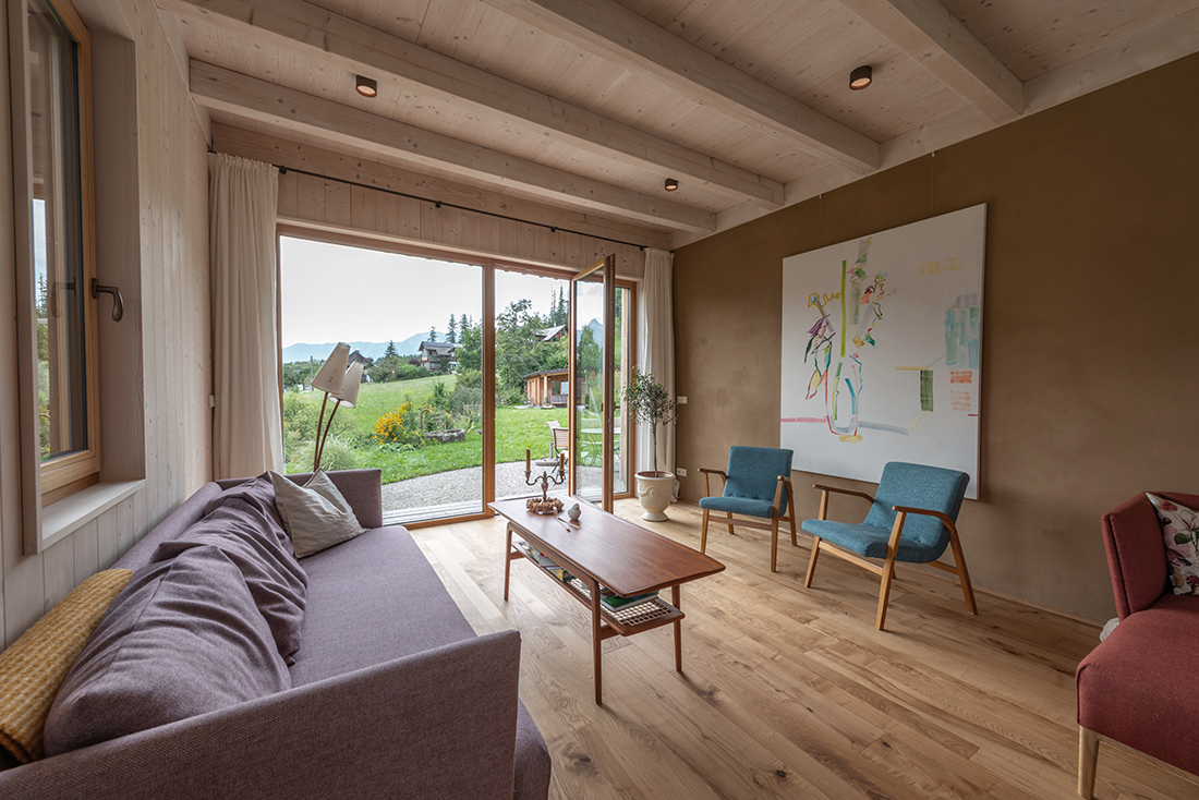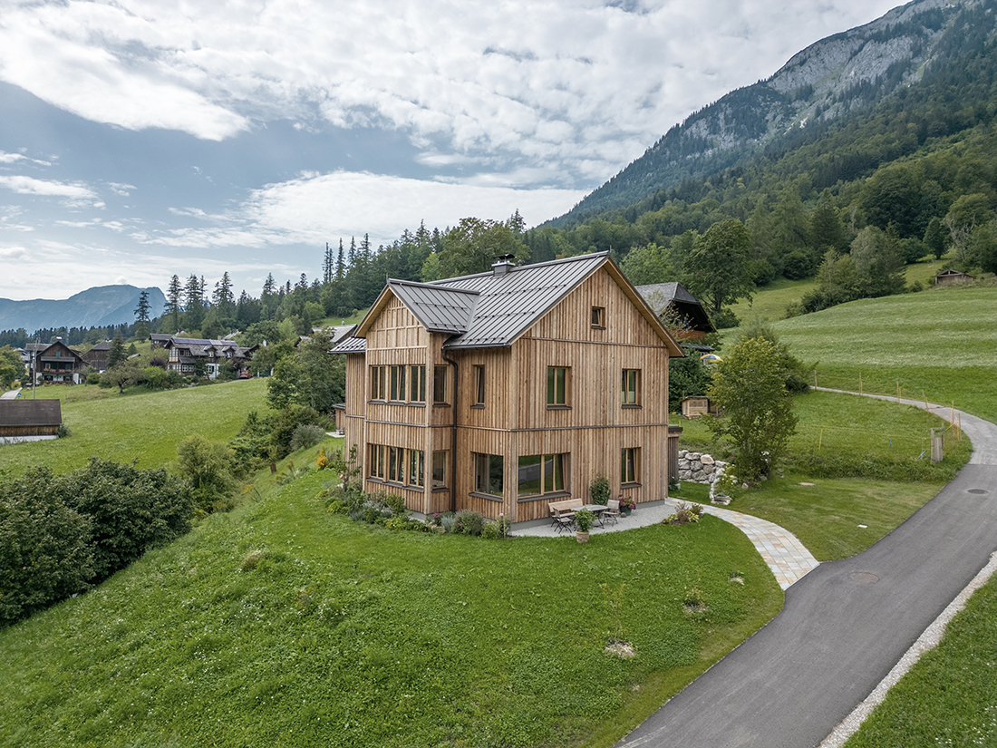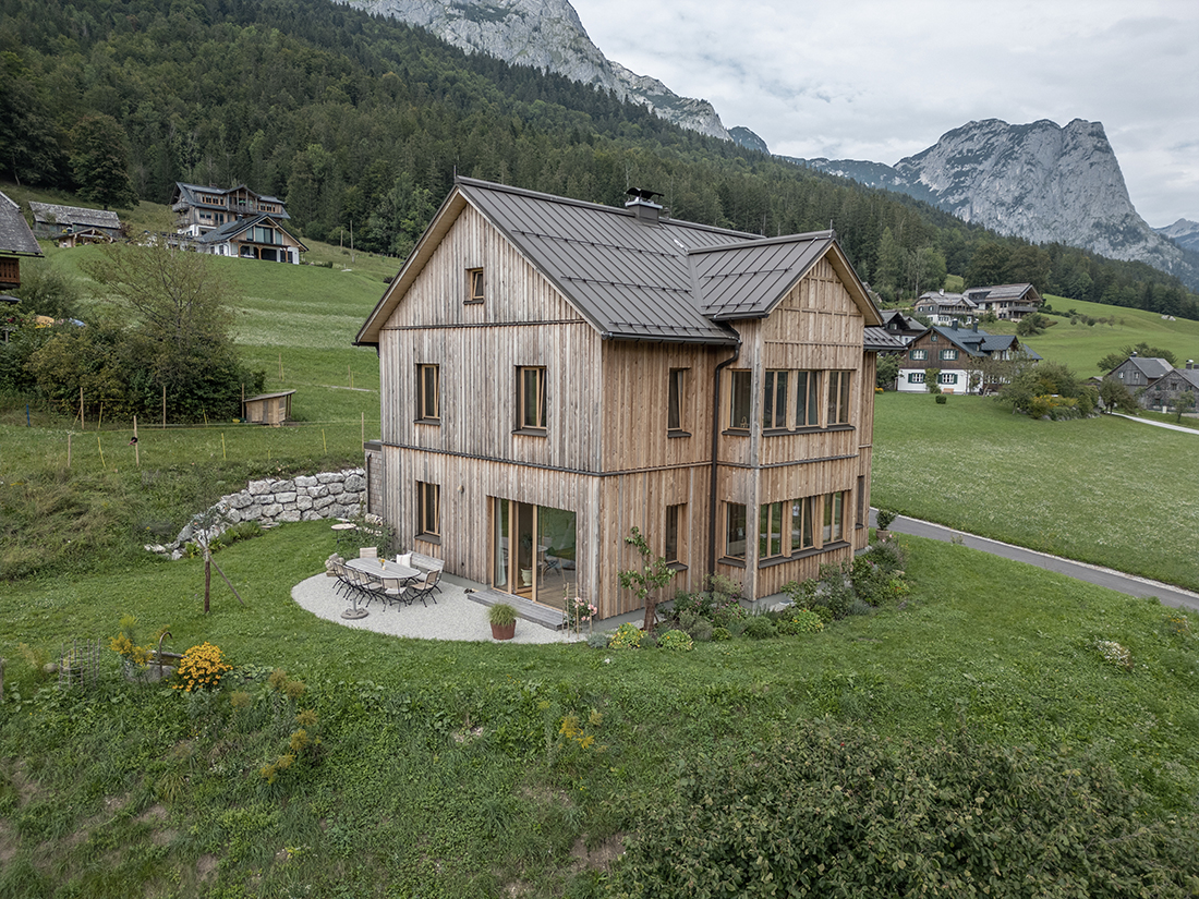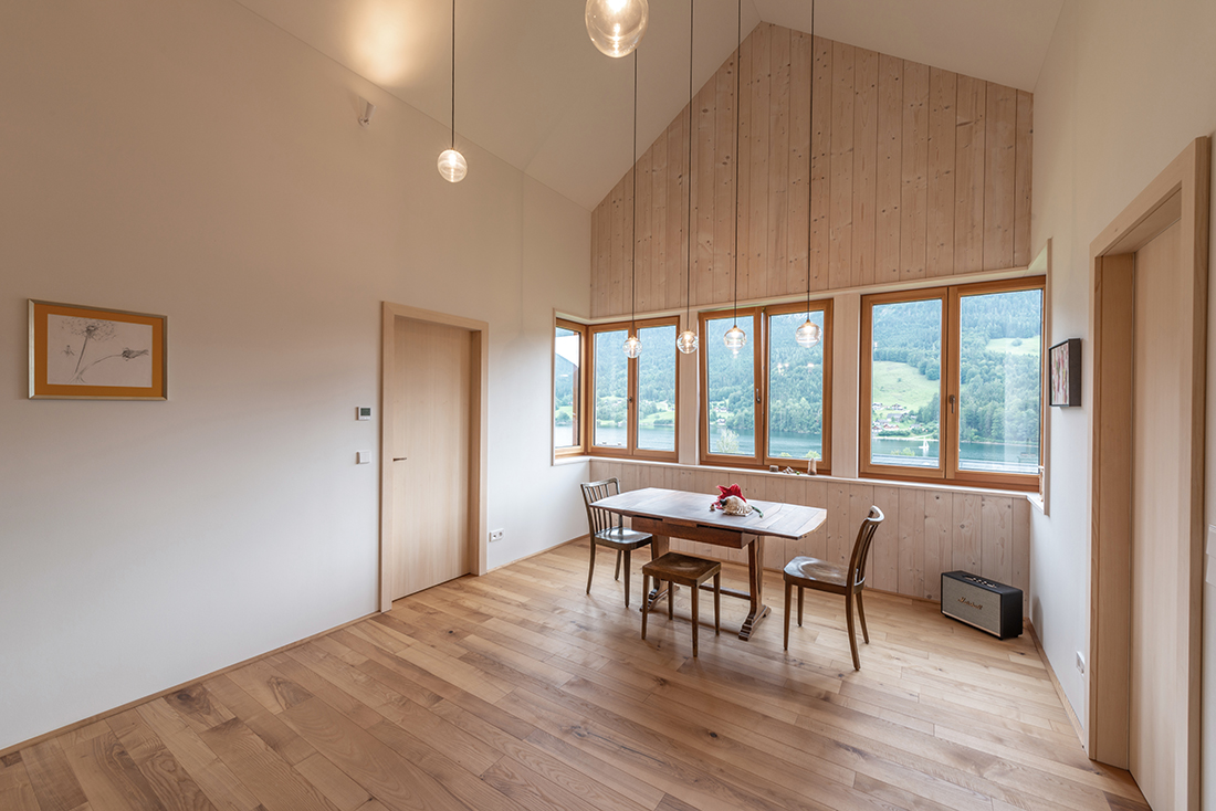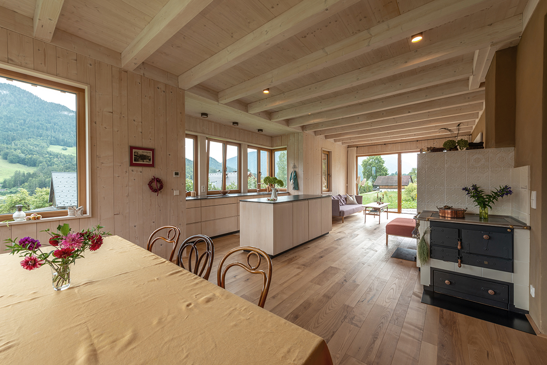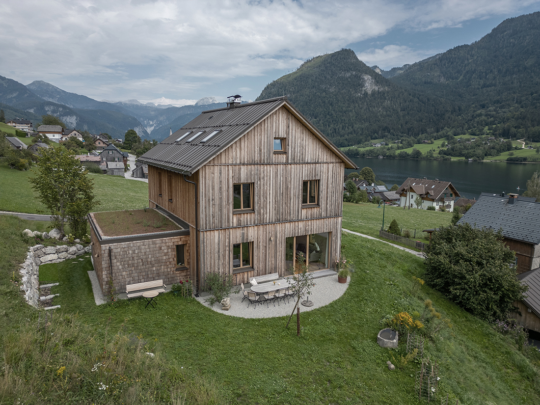 A magnificent building site just above Grundlsee, offering a wide view of the entire lake, served as the foundation for designing a home for a family of six. Great emphasis was placed on ecological construction, making it clear from the outset that the primary materials would be wood and clay. Strict formal guidelines from the building authority required the house to incorporate elements of the region’s traditional architecture. Our goal was to evolve these traditional forms and create a building that feels contemporary in its own unique way.