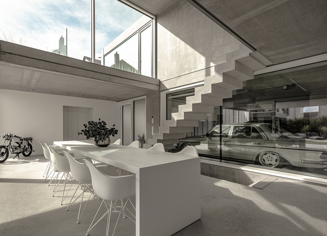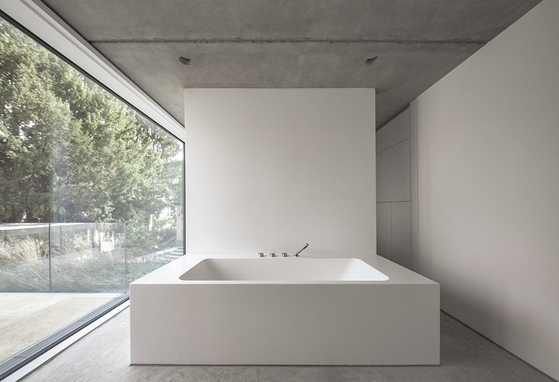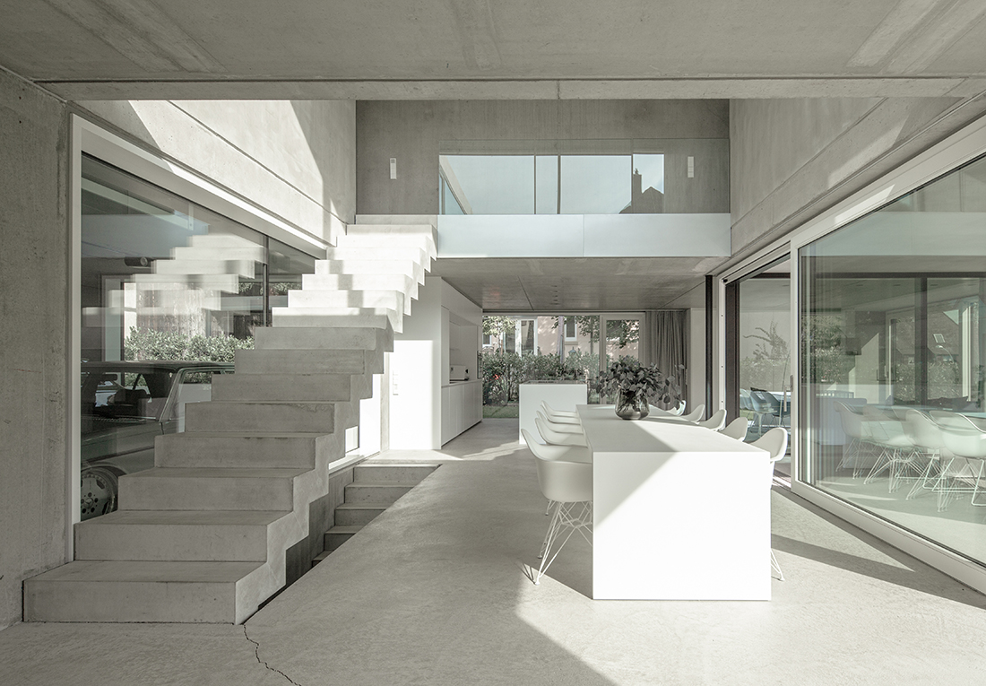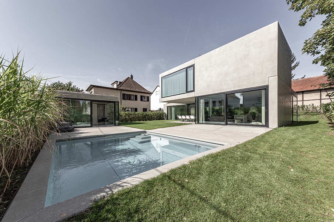 House vO is a striking example of “spectacular simplicity.” It is a concrete sculpture, with a haptic “refined shell”, emphasizing pure elegance over exposed concrete. The structure stands as a one-off discovery: unique, individual, and pure. “Self-confidently different,” the new modern concrete monolith asserts itself next to the villa of the founding era, forming a harmonious contrast between the two. Designed with sustainability in mind, the building is highly ecological, constructed from durable, easily recyclable materials, and boasts a final energy requirement of 24.8 kWh/(sqm.a).